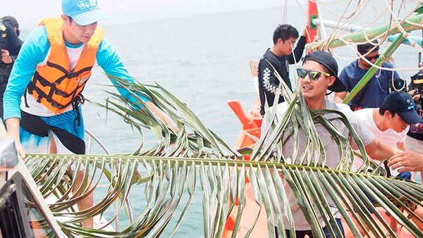 เมื่อคณะเดินทางมาถึง ก็ได้พบชาวบ้านซึ่งได้รวมตัวกันกำลังเตรียมการทำซั้งปลาอย่างขะมักเขม้น จากนั้นเวียร์ แชป และยูโร ไม่รอช้า กุลีกุจอให้ชาวบ้านสอนการทำซั้งปลา ซึ่งทำจากวัสดุจากธรรมชาติ ด้วยการนำทางมะพร้าวมาผูกติดกับลำไม้ไผ่และทุ่นคอนกรีต ระหว่างนั้นพระเอกเวียร์ ได้เล่าถึงข้อดีของการทำซั้งปลานี้ว่า