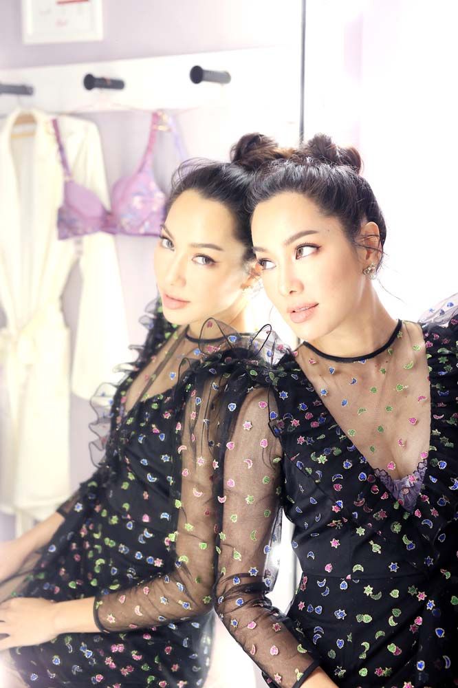 โดย “เจี๊ยบ” เผยว่า “เสื้อซีทรูช่วยเผยให้เห็นช่วงไหล่และเนินอก ทำให้ได้โชว์ลายลูกไม้สวยงาม อ่อนหวานตัดเย็บอย่างประณีตของชุดชั้นใน ฟลอราลเล่ มาริโกลด์ใส่แล้วดูไม่โป๊ ทั้งยังมีดันทรงช่วยให้เนินอกสวยใส่เสื้อแล้วดูสวยขึ้น เหมาะสำหรับคนที่หน้าอกเล็ก ความที่ตัวเล็ก และเนื้อบริเวณหน้าอกไม่มาก เวลาเลือกบราถ้ามีดันทรงนิดๆ ก็จะช่วยให้เนินหน้าอกดูเต็มมากยิ่งขึ้น รวมถึงดีไซน์ของบราก็เป็นสิ่งสำคัญ แม้ว่าหลายคนจะบอกว่า ชุดชั้นในใส่แล้วไม่มีใครเห็นก็ตาม แต่บางครั้งเจี๊ยบก็ชอบใส่เสื้อเชิ้ตและก็จะเปิดให้เห็นบราตัวในบ้างนิดหน่อยซึ่งก็เข้ากับแฟชั่นสมัยนี้ด้วย” ส่วนสาว “จอย” แนะว่า “ชุดชั้นในลูกไม้เป็นไอเท็มคลาสสิกหยิบมาใส่เมื่อไหร่ก็ยังไม่ล้าสมัย อย่างฟลอราลเล่ซับไลม์ที่เลือกมาจับคู่กับชุดเดรสซีทรู ก็จะให้ความรู้สึกเซ็กซี่ แต่มีความอ่อนหวานอยู่ค่ะ”