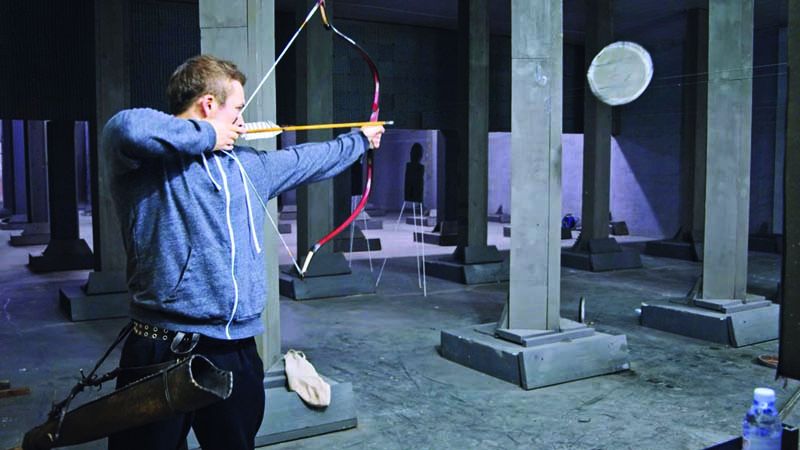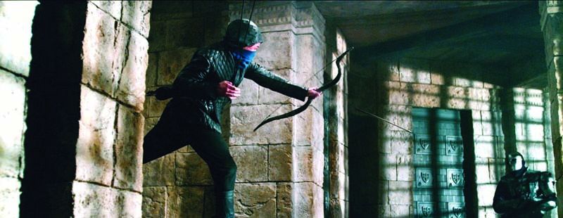 สำหรับการฝึกของทารอน เขาต้องยิงธนูให้ได้ทั้งจากสองมือ, ฝึกให้สามารถยิงได้ในทุกๆ ท่าการเคลื่อนไหว เพราะซีนแอ๊กชั่นในหนังนั้นมีกระบวนท่าที่ซับซ้อน อาทิ กระโดดหน้ายิง กระโดดหลังยิง รวมทั้งกระโดดม้วนตัวยิงรอบทิศทาง และที่สำคัญที่สุดคือความเร็ว ทารอนต้องยิงมากกว่าหนึ่งเป้าขณะเคลื่อนที่อยู่กลางอากาศ ซึ่งสุดท้ายเขายิงได้แม่นยำถึง 3 ดอกต่อวินาที ถือเป็นความเร็วที่ไวไม่แพ้นักธนูระดับมืออาชีพ