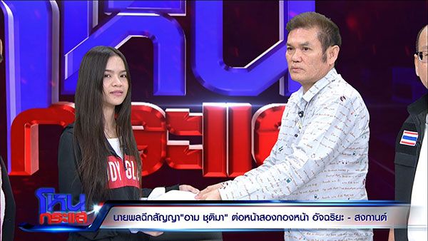 กลายเป็นข่าวที่ทำเอานักร้องสาว “อาม ชุติมา” ถึงกับช็อก หลังจากที่ “ประจักษ์ชัย เนาวรัตน์” เจ้าของค่ายไหทองคำเรคคอร์ด ฟ้องศาล เรียกค่าเสียหาย 21 ล้าน หลังเกิดเหตุขัดแย้งกัน ฝ่ายอาม ชุติมา ขอคืนอิสรภาพ อ้างสัญญาที่ไม่เป็นธรรม โดยมี 2 ทนายดังยื่นมือมาช่วยเหลือ ล่าสุดรายการโหนกระแส วันที่ 30 ต.ค.ดำเนินรายการโดย“หนุ่ม กรรชัย กำเนิดพลอย”ผลิตในนามบริษัท ดีคืนดีวัน จำกัด ออกอากาศทุกวันจันทร์- เวลา 13.30-14.10 น. ทางช่อง 28 ได้เปิดใจสัมภาษณ์ “อาม ชุติมา” ที่มาพร้อมกับ “พรพล” เจ้าของค่ายนายพล รวมทั้ง “อัจฉริยะ เรืองรัตนพงษ์” และ “ทนายสงกานต์ อัจฉริยะทรัพย์”