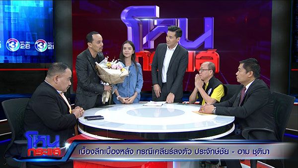 หลังกรณีพิพาทระหว่าง “ประจักษ์ชัย เนาวรัตน์” และ “อาม ชุติมา” ยืดเยื้อมา 6 เดือน โดยวันนี้ทั้งคู่จับมือเคลียร์ใจกันแล้วโดยมี 2 ทนายดังยื่นมือมาช่วย ล่าสุดโหนกระแสวันที่ 5 พ.ย. โดย “หนุ่ม กรรชัย กำเนิดพลอย” ได้เปิดใจสัมภาษณ์ อาม ชุติมา, ประจักษ์ชัย ไหทองคำ, ทนายสงกานต์ อัจฉริยะทรัพย์ คณะกรรมการปฎิรูปทวงคืนความยุติธรรม, อัจฉริยะ เรืองรัตนพงศ์ ประธานชมรมช่วยเหลือเหยื่ออาชญากรรม และ ทนายบุญถาวร ปัญญามณีโชติ ในบรรยากาศที่ครื้นเครงอยู่ไม่น้อย