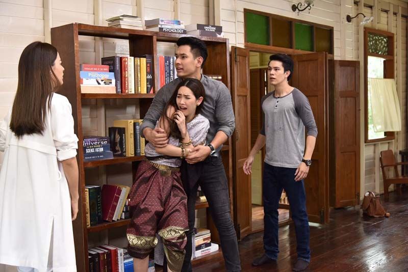 ฉากนี้เล่าเรื่องราว ตอนที่ เจ้าฟ้าทิพฉาย (พีชญา วัฒนามนตรี) ในร่างของ ปริตตา (มุกดา นรินทร์รักษ์) มาหา ดร.ภาธร (อรรคพันธ์ นะมาตร์) ที่บ้าน เวลาเดียวกันนั้น จู่ ๆ พลังของเจ้าฟ้าทิพฉายก็อ่อนแรงลง จนเกือบจะทำให้เธอล้มลง แต่ดร.ภาธรก็ประคองร่างของเธอเอาไว้ได้ และช่วงเวลานั้น ทินเทพ (ตากเพชร เลขาวิจิตร) และ รวิปรียา (ฝนทิพย์ วัชรตระกูล) มาเห็นเข้าพอดี ทินเทพเก็บอารมณ์หึงไว้ไม่อยู่ จึงพุ่งตัวไปต่อยดร.ภาธร ทิพฉายพยายามจะเข้าไปช่วยดร.ภาธร แต่เธอก็อ่อนแรงเกินกว่าจะทำอะไรได้ แถมรวิปรียาที่พยายามจะเข้ามาห้ามเธอ ก็สวมแหวนแก้วสุริยกานต์ ที่สร้างความเจ็บปวดให้เธอมากยิ่งขึ้น