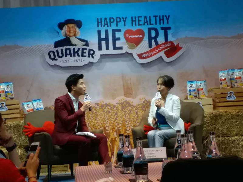 เนื่องในโอกาสวันหัวใจโลก (World Heart Day) ซึ่งตรงกับวันที่ 29 กันยายนของทุกปี ในปีนี้ บริษัท เป๊ปซี่-โคล่า (ไทย) เทรดดิ้ง จำกัด ในเครือเป๊ปซี่โค เจ้าของแบรนด์ “เควกเกอร์” (Quaker) ซึ่งเป็นผลิตภัณฑ์ข้าวโอ๊ตอันดับหนึ่งของโลก ได้จัดงาน “PepsiCo: Happy Healthy Heart #ดีต่อใจคนไทยแข็งแรง” ขึ้น เพื่อสร้างความตระหนักรู้ในเรื่องหัวใจและส่งเสริมให้คนไทยหันมาใส่ใจกับการดูแลรักษาสุขภาพร่างกายให้ห่างไกลจากโรคหัวใจและหลอดเลือด พร้อมแนะนำผลิตภัณฑ์ข้าวโอ๊ตซึ่งเป็นธัญพืชที่อุดมไปด้วยสารอาหารที่มีประโยชน์ต่อร่างกาย ทั้งยังช่วยลดระดับคอเลสเตอรอล จึงช่วยลดความเสี่ยงต่อการเกิดโรคหัวใจและหลอดเลือดได้