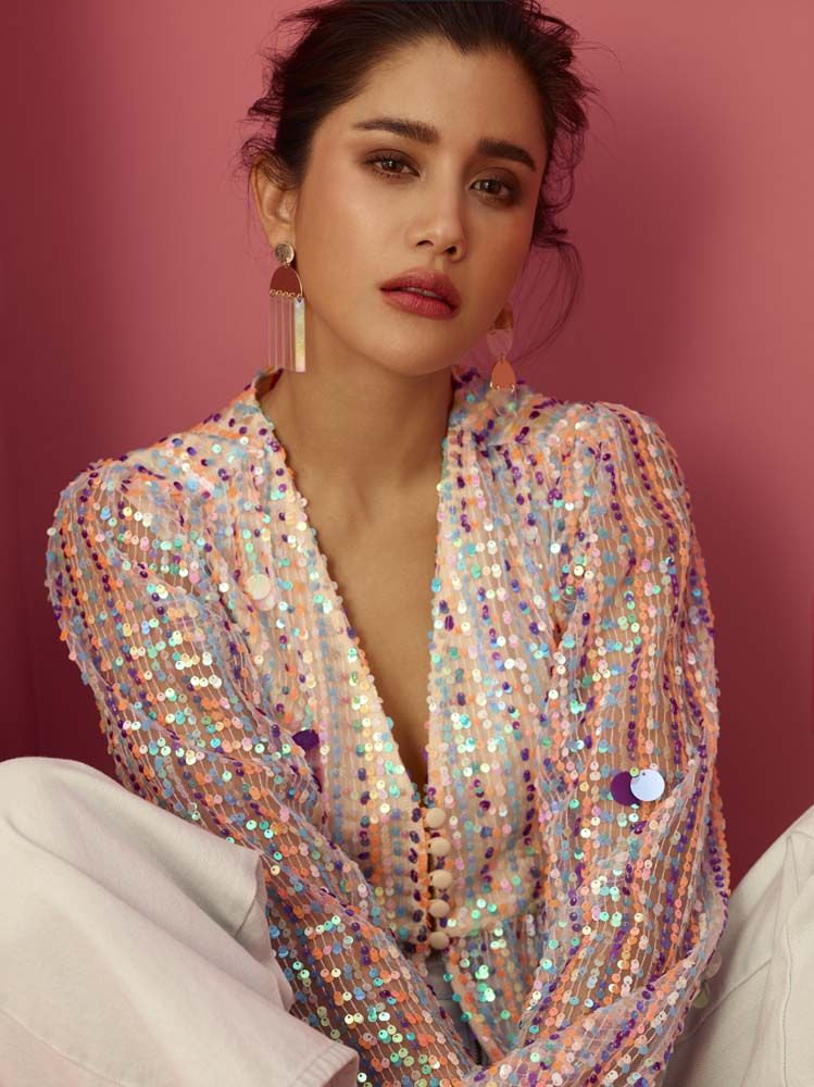 คีย์ไอเท็มที่สาวๆ ห้ามพลาดนั่นก็คือ เซตแจ็คเก็ตและกระโปรงหนัง Art Illustrated ที่ผสมกลมกลืนลายเส้นสุดแนวกับดีไซน์ไบคเกอร์แบบบอยๆ และชุดเดรส Midi Semi Sheer Sequin ปกเลื่อมกลิตเตอร์สีสันสดใส จากนั้นตบท้ายแบบชิคๆ ด้วยเดรส Midi Mixed Prints ที่จับลาย Plaid มามิกซ์กับ Floral ได้อย่างลงตัว
