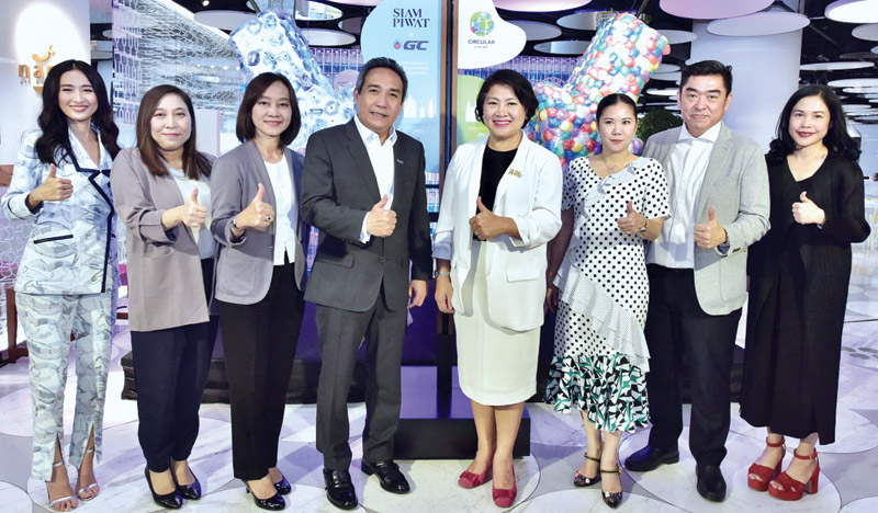 ปฏิภาณ สุคนธมาน ประธานเจ้าหน้าที่ปฏิบัติการ กลุ่มธุรกิจปิโตรเคมีขั้นปลาย บมจ.พีทีที โกลบอล เคมิคอล และ นราทิพย์ รัตตประดิษฐ์ รองกก.ผจก.ใหญ่อาวุโส สายงานปฏิบัติการ บจ. สยามพิวรรธน์ร่วมเปิดโครงการ “Circular Living Campaign 2018”