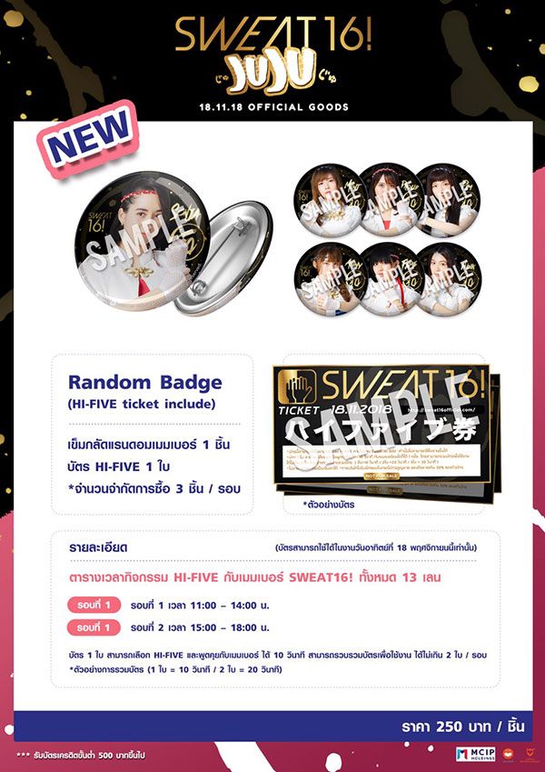 จัดเต็มเหนี่ยวไปกับกิจกรรมไฮไฟฟ์ พิเศษสุดสินค้าออฟฟิเชียลของวงสเวทซิกซ์ทีน ตั้งแต่ซิงเกิ้ลแรกจนถึงซิงเกิ้ลล่าสุด TKO และ สิ่งที่ทุกคนรอคอย งานนี้ 3 ทหารเสือ วิม-บอย-ไก่ (วิม มโนพิโมกษ์ ประธานกรรมการ บริษัท โยชิโมโต้เอ็นเทอร์เทนเมนท์ (ไทยแลนด์) จำกัด, บอย โกสิยพงศ์ จากเลิฟอิส, สุธี แสงเสรีชน จากเลิฟอิส) ผู้ปลุกปั้น 13 สาว พร้อมเผยถึงซิงเกิ้ลล่าสุดที่ลั่นออกมาแล้วว่า “ปิ้งย่าง” อรั๊ยย…บอกยาวกว่านี้ไม่ได้แล้วน่ะติดตามรายละเอียดของกิจกรรมเพิ่มเติ่มได้ที่[http://www.sweat16official.com,facebook.com/SweatSixteen]Facebook.com/SweatSixteen อย่าลืมมาเจอกันนะจ้า