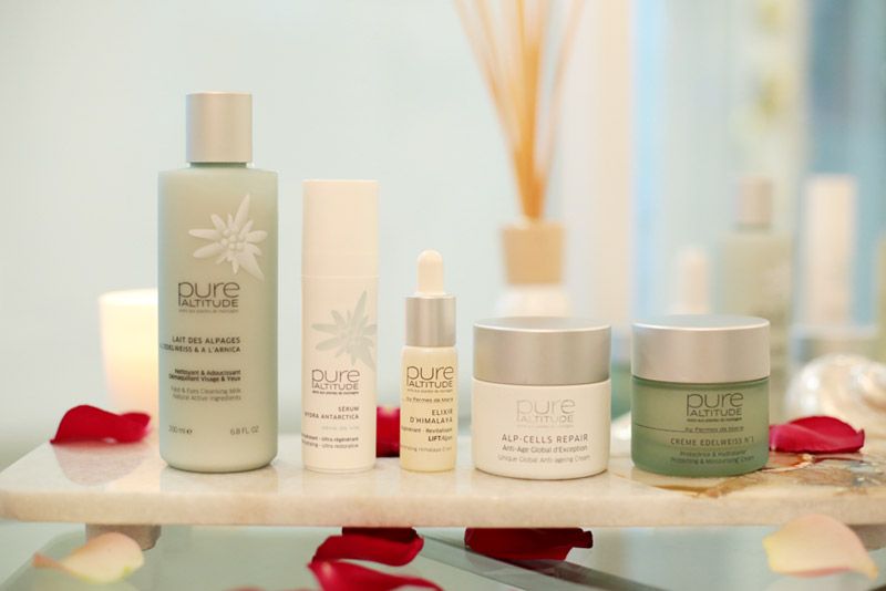 จุดเด่นของผลิตภัณฑ์ Pure Altitude อยู่ที่ความหายากของพืชพรรณที่มีคุณสมบัติในการปรับตัวต่อสภาพแวดล้อมสูง เนื่องจากเติบโตมาในสภาพภูมิอากาศแบบสุดขั้วรุนแรงบนเทือกเขาแอลป์ที่ปกคลุมด้วยหิมะอันหนาวเหน็บท่ามกลางลมแรงและแสงแดดจัดจ้าอยู่ตลอดเวลา ซึ่งจากการศึกษาวิจัยพบว่าพืชเหล่านี้มีสารสำคัญที่สามารถฟื้นฟูผิวในปริมาณที่มากกว่าพืชทั่วไป และหนึ่งในพืชเหล่านั้นก็คือ ดอกเอเดลไวส์ ซึ่งได้รับการหยิบยกเป็นเครื่องหมายของแบรนด์