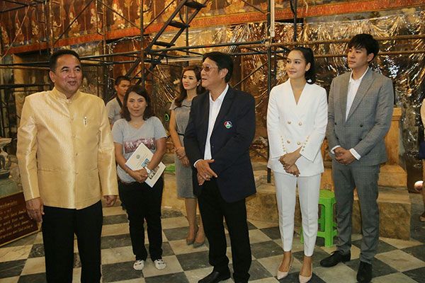 โดยหลังจากเสร็จพิธี ผู้บริหาร, นักแสดง และผู้ประกาศข่าว ช่อง 7HD ยังเข้าเยี่ยมชมงานบูรณะจิตรกรรมฝาผนังในโครงการ “7HD อนุรักษ์โบราณสถาน” ประจำปี 2561 (ปีที่ 2) ที่ช่อง 7HD ได้มอบเงินสนับสนุนจำนวน 3,462,000 บาท ให้แก่กรมศิลปากรนำไปบูรณะจิตรกรรมฝาผนัง และพระบรมสาทิสลักษณ์ รัชกาลที่ 4 ทอดพระเนตรสุริยุปราคา ในพระอุโบสถ, จิตรกรรมฝาผนังลายรดน้ำประตู หน้าต่าง และธรรมาสน์ 2 แท่น ในวิหารพระอินทร์แปลง, จิตรกรรมฝาผนัง ในวิหารพระพุทธไสยาสน์ ซึ่งเป็นผลงานจิตรกรชั้นครู ที่วาดขึ้นสมัยรัชกาลที่ 5 และได้รับความเสียหายจากเหตุการณ์น้ำท่วมปี 2554 จนมีสภาพชำรุด ชั้นสีโป่งพอง หลุดร่อน ซึ่งแผนบูรณะครั้งนี้คาดว่าจะแล้วเสร็จในปี 2562
