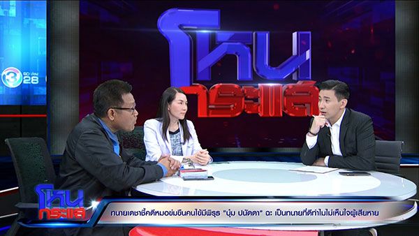 เดชา : “นั่นแหละ ผมก็เป็นห่วง แล้วน้องคนสวยก็ใจร้อน ด่าผมแรงเลย คุณบุ๋มว่างเมื่อไหร่นัดเลย ผมยินดีข้าไปช่วย ผมจะตั้งคำถามรก ๆ ไว้ให้แก้ เพราะขึ้นศาลก็โดนซักค้านอยู่แล้ว”