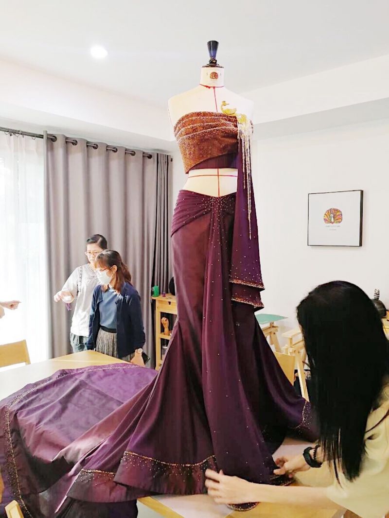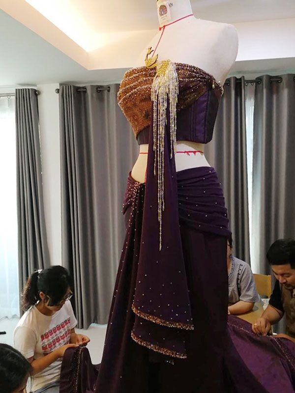 สำหรับชุดราตรีผ้าไหมไทยที่ พระองค์หญิงสิริวัณณวรีฯ ทรงประทานให้ เดมี ลีห์เนล ปีเตอร์ส มิสยูนิเวิร์ส 2017 นับเป็นความท้าทายอย่างหนึ่ง โดยได้แรงบันดาลใจมาจากฉลองพระองค์ของสมเด็จพระนางเจ้าสิริกิติ์ พระบรมราชินีนาถ ในรัชกาลที่ 9 รังสรรค์มาในรูปแบบชุดไทยเกาะอกที่ไม่มีแพทเทิร์นแต่สร้างเสน่ห์ความเป็นสากลได้อย่างพอดิบพอดี โดยเลือกใช้ผ้าไหมเรียบและผ้าไหมแพรวา ดีไซน์โดยใช้เทคนิค Draping ตกแต่งและจัดวางผ้าบนหุ่นโดยเน้นการจับผ้าให้มีความพลิ้วไหวสวยงามดูสวยเป็นธรรมชาติยามเคลื่อนไหว พร้อมการปักกระโปรงแนวกรีกให้แลดูทันสมัยมากขึ้น ซึ่งเป็นการผสมผสานระหว่างความเป็นไทยในชุดช่วงบนกับความเป็นสากลในชุดช่วงล่างออกมาได้อย่างลงตัว