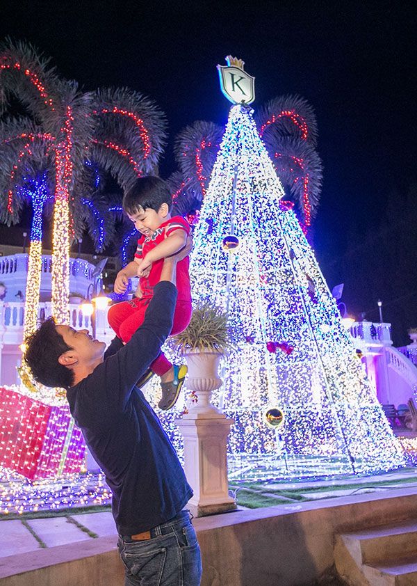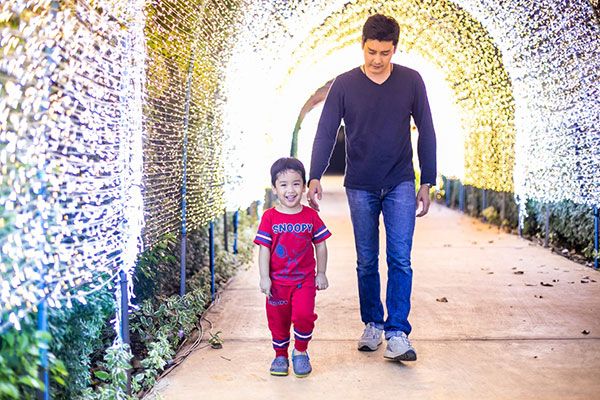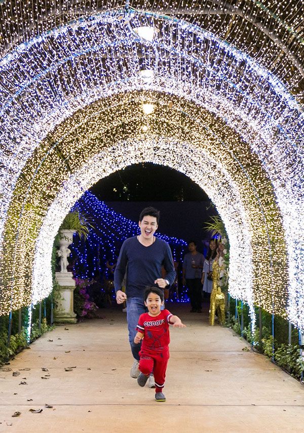 งานนี้พ่อเขตต์และน้องดีจ้าตื่นตาตื่นใจกับงานแสดงไฟครั้งนี้เป็นอย่างมาก เพราะทั้งสวนดอกไม้ที่จำลองบรรยากาศมาจากสวนเคนชิงตันประเทศอังกฤษ ซึ่งเป็นสถานที่จัดงานได้ถูกตกแต่งด้วยหลอดไฟ LED กว่า 1 ล้านดวง โดยมีฉากหลังเป็นโบสถ์ยิ่งทำให้ดูยิ่งใหญ่อลังการตื่นตาตื่นใจเข้าไปอีก ซึ่งนับเป็นครั้งแรกของน้องดีจ้าที่ได้มาดูไฟจำนวนเยอะๆ ขนาดนี้ งานนี้เลยได้เห็นภาพรอยยิ้มความอบอุ่น ขี้เล่นระหว่างพ่อ ลูก ที่ใครเห็นเป็นต้องยิ้มตามตลอดเวลา