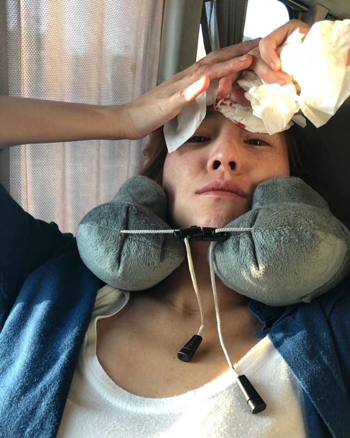 “ขอตอบทีเดียวเลยนะคะ จิ๊บหัวแตกค่า เมื่อเช้าที่อุดร หัวไปกระแทกกับ สันขอบกระโปรงรถตู้ ตอนนี้เย็บเรียบร้อยแล้ว ทั้งหมด 7 เข็ม ขอบคุน @faaaiiii_natapat ที่คอยดูแลไม่ห่างเลย คุณเพื่อนตั้งสติได้ดีมากค่ะ แม่นางพยาบาลของเก๊า และพี่เต้ @pitisak_yaowananont ที่รับมือได้ดีมาก เป็นการเจอกันปุ๊บ น้องก็มอบเลือดให้พี่เลย และขอขอบคุนทุกความเป็นห่วงและ กำลังใจนะคะ #ทะเบียนรถตู้1813”