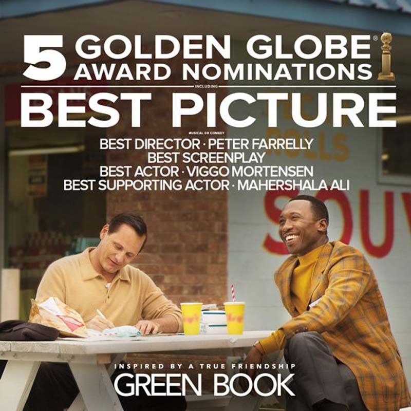 และล่าสุด GREEN BOOK กลายเป็นผลงานที่โชว์พลังบนเวทีรางวัลใหญ่อย่าง รางวัลลูกโลกทองคำ (Golden Globe Awards – โกลเด้น โกลบ อวอร์ดส์) ประจำปี 2019 ด้วยการผงาดเข้าชิงมากถึง 5 รางวัลใหญ่ ได้แก่ ภาพยนตร์ยอดเยี่ยม (ตลก/มิวสิคัล), ผู้กำกับยอดเยี่ยม (ปีเตอร์ ฟาร์เรลลี), บทภาพยนตร์ยอดเยี่ยม, นักแสดงนำชายยอดเยี่ยม (วิกโก้ มอร์เทนเซน – ตลก/มิวสิคัล) และ นักแสดงสมทบชายยอดเยี่ยม (มาเฮอร์ชาลา อาลี)