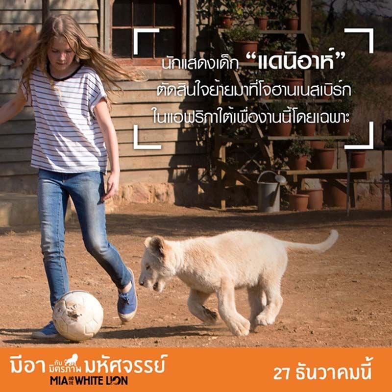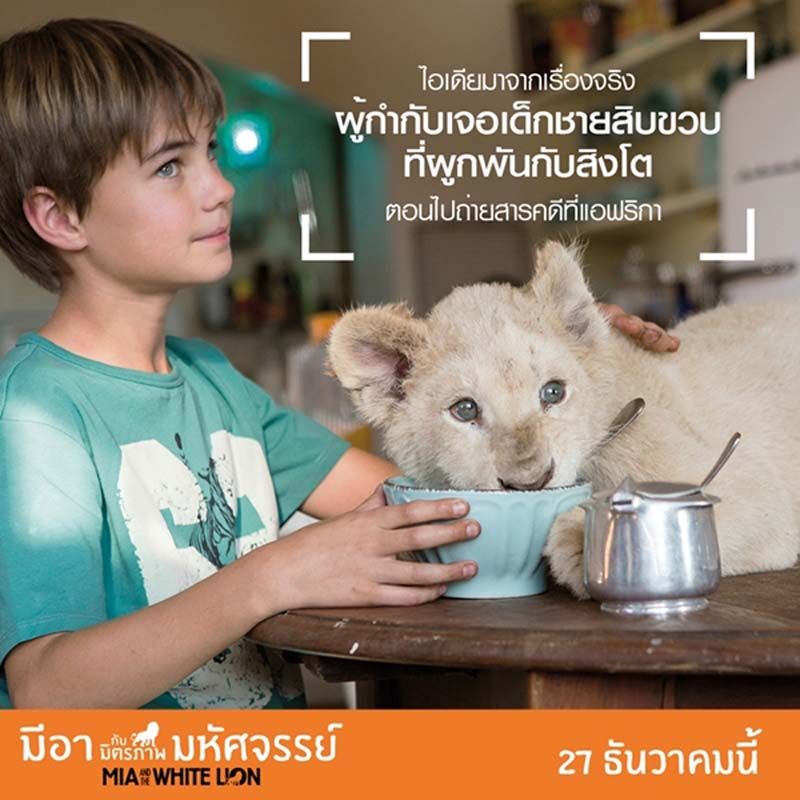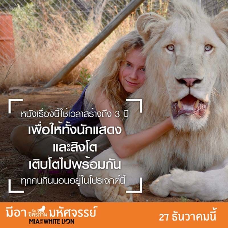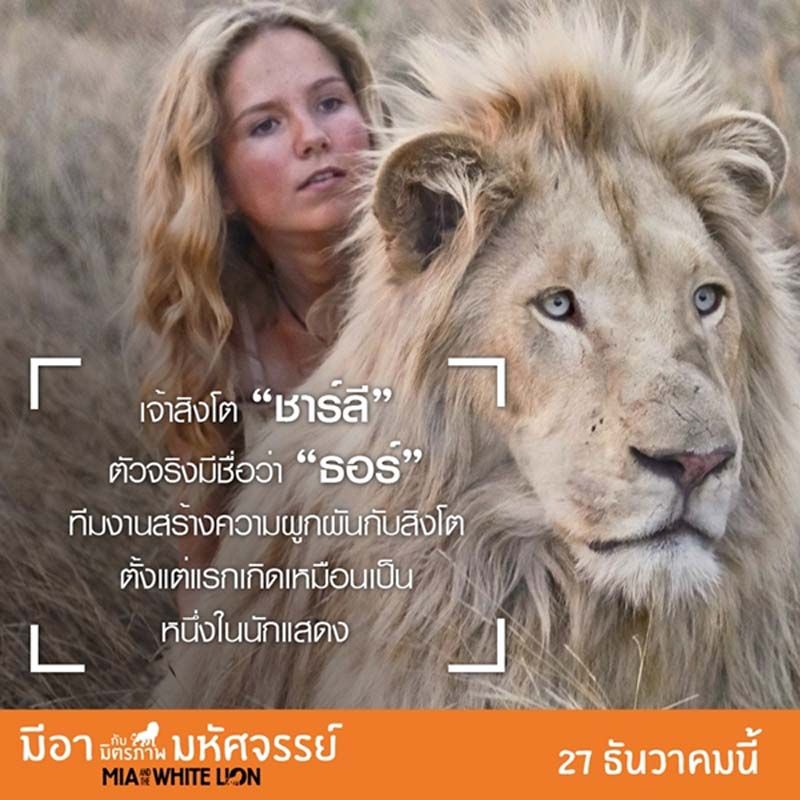 แฟน ๆ ชาวไทยอดใจรออีกไม่นาน “มีอา” และ “ชาร์ลี” จะเติมเต็มเทศกาลแห่งความสุข พาคุณก้าวข้ามปีใหม่นี้ด้วยความรักสุดมหัศจรรย์ จะเป็นอย่างไรถ้าเพื่อนซี้คุณเป็นสิงโต? “Mia and the White Lion มีอากับมิตรภาพมหัศจรรย์” 27 ธันวาคมนี้ ในโรงภาพยนตร์
