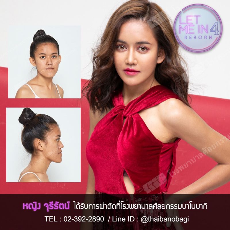 หญิง จุรีรัตน์ สาวสู่ชีวิตจากรั้วมหาวิทยาลัยมหาสารคาม ที่ช่วยพ่อแม่ทำนาและขายผักในตลาด แต่เพราะใบหน้าของเธอที่ใครๆ มักบอกว่าเธอคือ “แม่ค้าหน้างอ” จนทำให้ลูกค้ามักเมินหนี เพราะเธอดูหน้าบึ่งอยู่ตลอดเวลา แถมหน้าแก่กว่าวัย แต่วันนี้รายการ “Let me in Thailand 4 Reborn” พร้อมด้วย ศัลยแพทย์โอชางฮยอน จาก โรงพยาบาลศัลยกรรมบาโนบากิ จะช่วยสานฝันให้น้องหญิงสู่อาชีพที่ใฝ่ฝันได้เป็นนักขายหน้าสวย ยิ้มหวานตามตั้งใจ ด้วยการเนรมิตรทั้ง ผ่าตัดขากรรไกร, ปรับรูปหน้า โหนกแก้ม กราม คาง เพื่อแก้ไขปัญหาหน้าที่เบี้ยวให้กลับมาตรงตามปกติ พร้อมด้วยผ่าตัดแก้ไขหูกาง ศัลยกรรมจมูก ให้ได้ทรงสวยรับกับใบหน้า เพิ่มเติมความสวยด้วยการเย็บกล้ามเนื้อตา ให้ดวงตาดูสดใส พร้อมกับเอนโดไทน์หน้าผาก ฉีดฟิลเลอร์และเสต็มเซลล์ใบหน้า เพื่อเติมร่องลึกให้เต็ม จนวันนี้น้องหญิงจากฉายา “แม่ค้าหน้างอ” กลายเป็นแม่ค้าหน้าสวยยิ้มหวานจนลูกค้าต้องประทับใจในรอยยิ้มไปตามๆ กัน