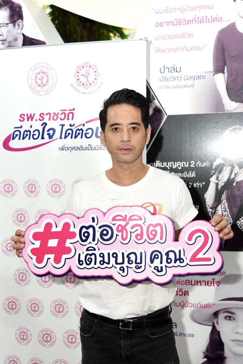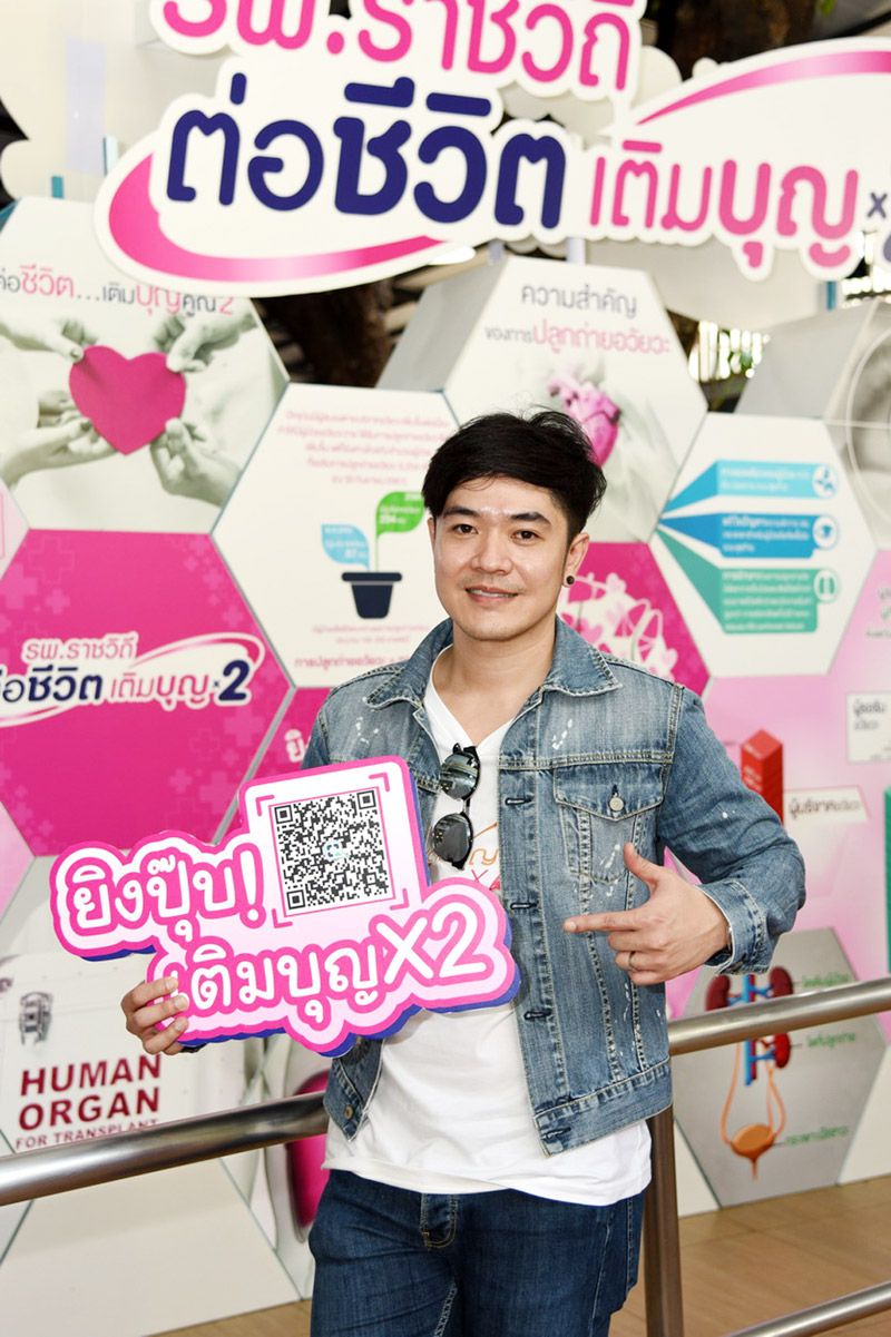 ศิลปินใจบุญตบเท้าร่วมงานโครงการ“รพ.ราชวิถี ดีต่อใจ ได้ต่อบุญ ปี2” กับแคมเปญ “รพ.ราชวิถี ต่อชีวิต เติมบุญ คูณ2” เชิญชวนคนไทยร่วมสมทบทุนซื้อเครื่องมือแพทย์ศูนย์ความเป็นเลิศเฉพาะทางการปลูกถ่ายอวัยวะ อาคารศูนย์การแพทย์ราชวิถี พร้อมลดหย่อนภาษีได้ 2 เท่าและต่อชีวิตให้กับผู้ป่วยอีกจำนวนมากจากทั่วประเทศงานนี้ นำโดย อ.ธนิสร์ ศรีกลิ่นดี, ต้อม-ไกรวิทย์, ปาล์ม-อินสติงค์, ปรียวิศว์นิลจุลกะ, ปั้น-แบชเชอร์, เจษฎา ลัดดาชยาพร,หนู มิเตอร์, สร่างศัลย์ เรืองศรี, ปราโมทย์ วิเลปะนะ, บี๋-คณาคำ อภิรดี ฯลฯ ณ บริเวณลานอเนกประสงค์ (หน้าห้องตรวจอายุรกรรมเฉพาะโรค) ชั้น1 โรงพยาบาลราชวิถี เมื่อเร็วๆ นี้ ผู้มีจิตศรัทธาสามารถร่วมเป็นส่วนหนึ่งได้โดยร่วมบริจาคได้ที่ชื่อบัญชี “เงินบริจาคของโรงพยาบาลราชวิถี” หมายเลขบัญชี 051-276128-1 ธนาคารไทยพาณิชย์ สาขาโรงพยาบาลราชวิถี หรือ โทร.02-3548108-37 ต่อ 3032