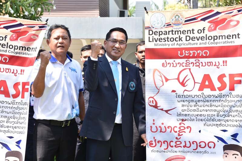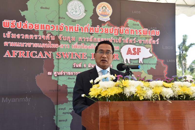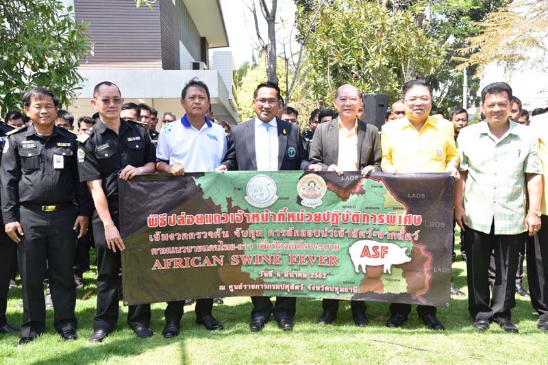 โรคอหิวาต์แอฟริกาสุกร (African Swine Fever : ASF) เป็นโรคระบาดสำคัญที่เกิดกับสุกร ไม่มีวัคซีนป้องกัน ไม่มียารักษา ตัวเชื้อทนต่อสภาพแวดล้อมและอุณหภูมิ หากสุกรติดโรคแล้วจะมีอัตราการป่วยและการตายสูง ปัจจุบันมีรายงานการเกิดโรคในหลายประเทศ โดยเฉพาะอย่างยิ่งในประเทศจีน พบการระบาดของโรคอย่างรุนแรง ทำให้เกิดความเสียหายกับธุรกิจการเลี้ยงสุกรของจีนอย่างมหาศาล ล่าสุดมีรายงานการเกิดโรคที่ประเทศเวียดนาม ซึ่งประเทศไทยตรวจพบการลักลอบนำเข้าผลิตภัณฑ์แปรรูปจากสุกรที่ผลิตจากประเทศเวียดนามโดยผ่านประเทศลาวเข้ามาทางจังหวัดนครพนม จึงสั่งการให้เจ้าหน้าที่หน่วยปฏิบัติการพิเศษร่วมกับด่านกักกันสัตว์ในพื้นที่ เข้าปฏิบัติงานตรวจค้นจับกุมการลักลอบนำเข้าสินค้าปศุสัตว์ โดยเฉพาะสุกร ในพื้นที่ 5 จังหวัดชายแดนที่ติดกับประเทศลาว ได้แก่ เลย นครพนม มุกดาหาร หนองคาย และอุบลราชธานี ปฏิบัติงานลาดตระเวน ตรวจค้นจับกุมการลักลอบนำเข้าสัตว์ – ซากสัตว์ บริเวณจุดผ่านแดนถาวร (ท่าเรือ สะพานมิตรภาพ รถไฟ) จุดผ่านแดนชั่วคราว และช่องทางธรรมชาติ ตรวจสอบการเคลื่อนย้ายและการค้าสัตว์ – ซากสัตว์ตามตลาดในพื้นที่ตลอดแนวชายแดนไทย – ลาว