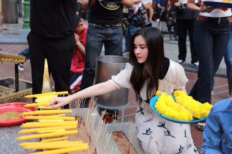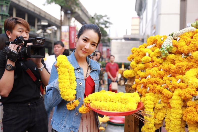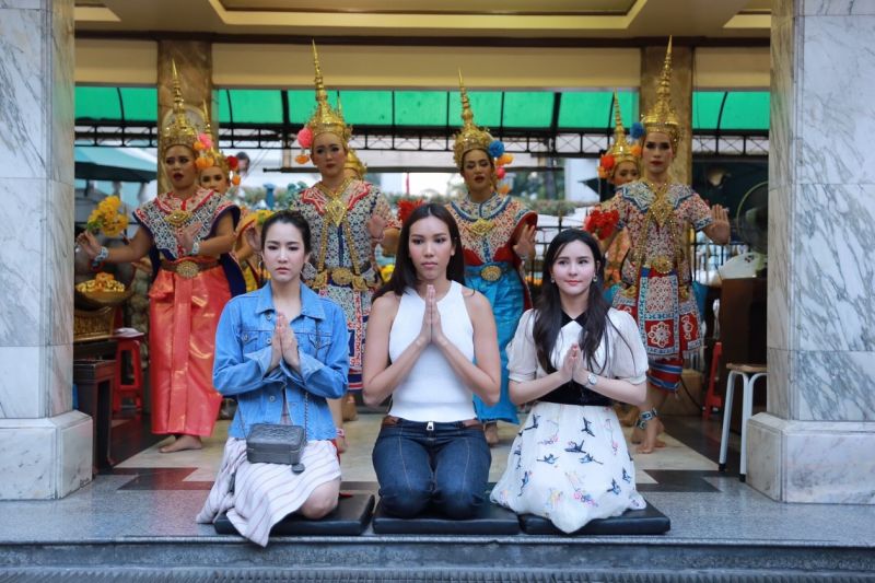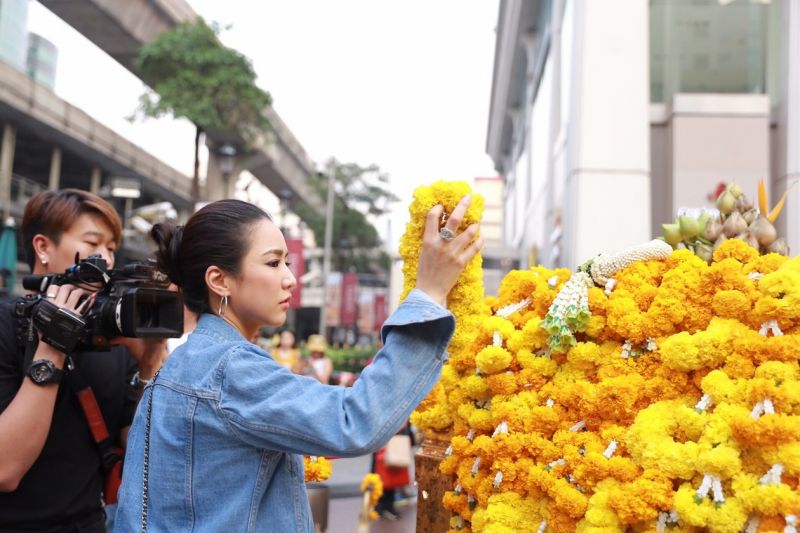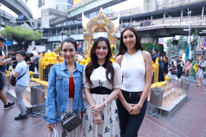 “ผู้จัด-จั๊กจั่น-ออม สุชาร์” ร่วมกันสักการะ พระพรหมเอราวัณ