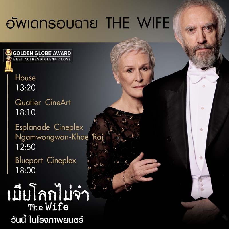 และในปี 2018 การแสดงอันยอดเยี่ยมของ เกล็นน์ โคลส ใน The Wife ทำให้เธอคว้ารางวัลลูกโลกทองคำในสาขานักแสดงนำฝ่ายหญิงยอดเยี่ยมภาพยนตร์ดราม่ามาครองได้ และกลายเป็นตัวเต็งออสการ์สาขานักแสดงนำหญิงยอดเยี่ยมไปในทันที