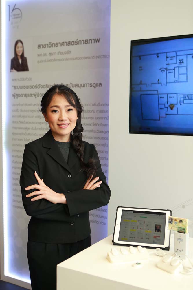 ผศ.ดร.สุรภา เทียมจรัสผู้ได้รับทุนวิจัยสาขาวิทยาศาสตร์กายภาพ กล่าวว่า ประเทศไทยกำลังเผชิญหน้ากับสถานการณ์ที่ประชากรอายุ 60 ปีและมากกว่าเพิ่มขึ้นอย่างรวดเร็ว ซึ่งประชากรสูงอายุมีความต้องการบริการด้านสุขภาพทั้งในการป้องกัน การรักษาและการฟื้นฟูอย่างมาก แต่รัฐบาลอาจไม่สามารถให้บริการได้อย่างครอบคลุม นอกจากนี้สัดส่วนที่เพิ่มขึ้นของประชากรสูงอายุต่อจำนวนประชากรวัยทำงาน ยังจะส่งผลทำให้เกิดปัญหาการขาดแคลนผู้ดูแล ดังนั้น การใช้เทคโนโลยีสารสนเทศเข้ามาเพื่อสนับสนุนการเฝ้าระวังและดูแลผู้สูงอายุจึงเป็นสิ่งจำเป็น จึงได้ศึกษาพัฒนาเพื่อนำเทคโนโลยีโครงข่ายเซนเซอร์ร่างกายและไอโอที (Internet of Things; IoT) มาใช้สนับสนุนระบบการดูแลผู้สูงอายุในประเทศไทยเริ่มต้นจากการศึกษาความต้องการของผู้ใช้จากผู้ดูแลผู้ป่วย และผู้สูงอายุจากหลายๆแหล่ง เพื่อนำมาพัฒนาอุปกรณ์และระบบสำหรับเฝ้าระวังตรวจจับ ป้องกัน และแก้ไขปัญหาสุขภาพที่พบบ่อยในผู้สูงอายุ เช่น ปัญหาแผลกดทับและการลื่นหกล้ม เซ็นเซอร์อัจฉริยะขนาดเล็กจะคอยเฝ้าระวังผู้สวมใส่และแจ้งเตือนไปยังผู้ดูแลหากมีเหตุการณ์ไม่พึ่งประสงค์เกิดขึ้น หรือผู้สวมใส่อยู่ในสภาวะที่มีความเสี่ยง เพื่อให้ผู้ดูแลสามารถเข้าช่วยเหลือได้ทันท่วงที