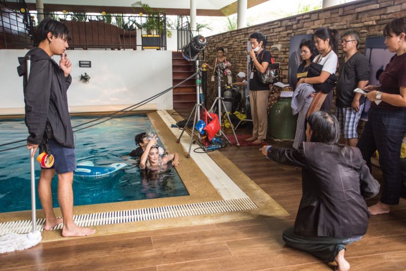 หม่อมน้อย – ม.ล.พันธุ์เทวนพ เทวกุล ผู้กำกับภาพยนตร์ได้เผยว่า “ฉากนี้เป็นฉากที่เทพธิดา บุษบาบรรณ (แพนเค้ก เขมนิจ) และ คุณทองหยิบ (ด.ช.ภคพล ตัณฑ์พานิชย์) ได้ปรากฏตัวขึ้น ภพปัจจุบัน ให้ วายุ (ฮัท จิรวิชญ์) เห็นในสระว่ายน้ำ เพื่อเรียกร้องให้ วายุ เดินทางไปยังกรุงศรีอยุธยาเพื่อระลึกชาติภพ ในอดีตเมื่อครั้งเสียกรุงฯ ซึ่งฉากนี้ได้ถ่ายทำกันที่สระน้ำ บ้าน P4 หมู่บ้านปัญญา รามอินทรา โดยมีครูฝึกดำน้ำดูแลความปลอดภัยถึงสองคน ซึ่งแพนเค้กต้องสวมชุดเทพธิดา อยู่ใต้น้ำตลอดการถ่ายทำ ซึ่งไม่ได้เอื้อต่อการเคลื่อนไหวใต้น้ำเลย แต่แพนเค้กและน้องรถบัสได้แสดงสปิริตของการเป็น นักแสดงมืออาชีพอย่างแท้จริง โดยไม่ปริปากบ่นแม้แต่คำเดียวจึงได้ภาพที่งดงาม ดังที่ได้เห็น ทำให้การถ่ายทำฉากใต้น้ำในวันนั้น เสร็จสิ้นอย่างสมบูรณ์ เกินความคาดหมาย ”