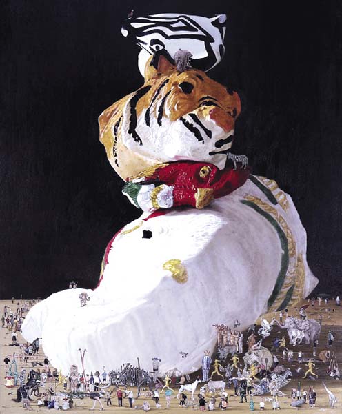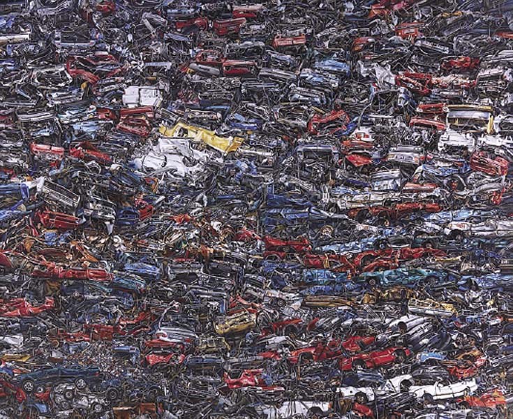 “ผมต้องการนำเสนอความยุ่งเหยิงวุ่นวาย ซากของอุตสาหกรรมหนักมาจัดพื้นที่ใหม่เป็นงานจิตรกรรมแบบใหม่ เอาซากรถยนต์มาเรียงกันขึ้นไปเป็นชั้น มองไกลๆ เป็นนามธรรม พอมองใกล้ๆ เป็นภาพเสมือนจริงต้องการนำความวาไรตี้ของซากรถมานำเสนอ ผลงานชิ้นนี้สร้างสรรค์ขึ้นเพื่อใช้เป็นผลงานในการทำวิทยานิพนธ์ก่อนจบ โดยใช้เวลาวาดกว่า 3 เดือน พอผลงานเสร็จจึงลองส่งเข้าร่วมประกวดกับโครงการประกวดจิตรกรรมยูโอบีดู ซึ่งถือเป็นเวทีที่ผมใฝ่ฝันมานานแล้ว ปีนี้จึงนำผลงานส่งประกวด และได้รับรางวัลชนะเลิศประเภทศิลปินใหม่หรือสมัครเล่น รู้สึกดีใจมาก และภูมิใจในตัวเองที่ผลงานได้รับรางวัลใหญ่ระดับประเทศในครั้งนี้”