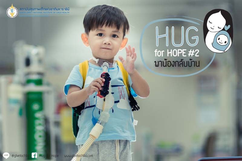 บริจาคเพื่อโครงการร่วมงาน “HUG forHOPE ปีที่ 2” พาน้องกลับบ้าน โอนเงินเข้าบัญชี มูลนิธิโรงพยาบาลเด็กเพื่อกองทุนเฉลิมพระเกียรติ 80 พรรษามหาราชินี ธ.ไทยพาณิชย์ บัญชีกระแสรายวัน เลขที่บัญชี 051-3-01713-0