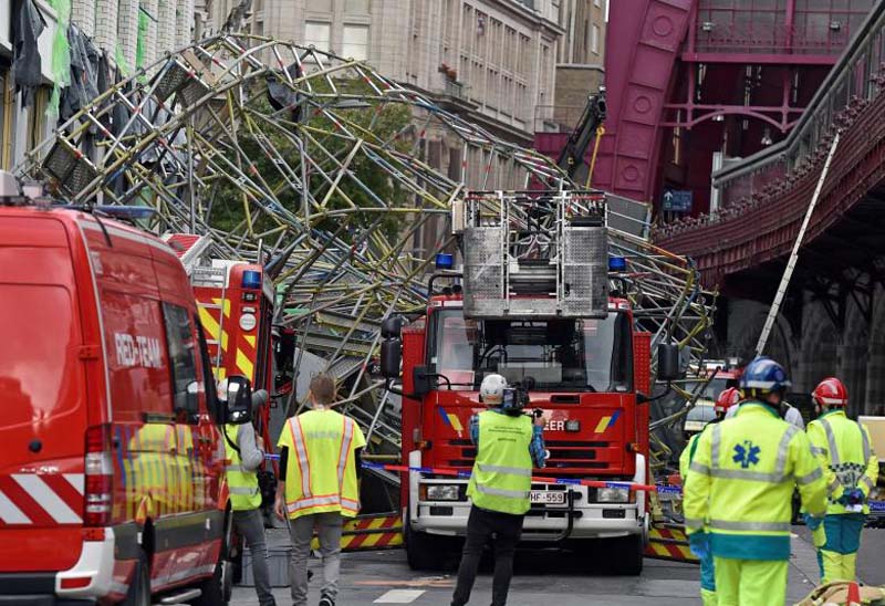 นั่งร้านถล่ม : เจ้าหน้าที่กู้ภัยและตำรวจดับเพลิงเบลเยียม ตรวจสอบที่เกิดเหตุนั่งร้านก่อสร้างพังถล่มด้านนอกสถานีรถไฟใต้ดินในเมืองอันต์เวิร์ป ประเทศเบลเยียม ส่งผลให้มีผู้เสียชีวิตอย่างน้อย 1 คน ส่วนสาเหตุที่ทำให้นั่งร้านพังถล่มยังไม่ทราบแน่ชัด