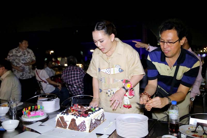 งานนี้ถือเป็นการเลี้ยงขอบคุณทุกคนที่ช่วยเหลืองานมาตลอดทั้งปี มีทั้งเพื่อนพ้องน้องพี่ทั้งในและนอกวงการธุรกิจ วงการบันเทิง อีกทั้งยังมีนักเรียน เหล่าพนักงานที่มาร่วมในงานนี้เกือบ 50 คน ก็ถือเป็นการพบปะสังสรรค์ประจำปี นอกจากนี้ยังเป็นการฉลองวันเกิดของพี่เองและฉลองการเข้ารับตำแหน่งใหม่ของสามี “คุณจำลักษ์” ในตำแหน่ง “ผู้ตรวจการแผ่นดิน” อีกด้วยและในปีหมูทอง 2562 นี้ก็ขออวยพรให้ทุกท่านมีแต่ความสุขความเจริญคิดสิ่งใดก็ขอให้ได้สมดั่งปรารถนา