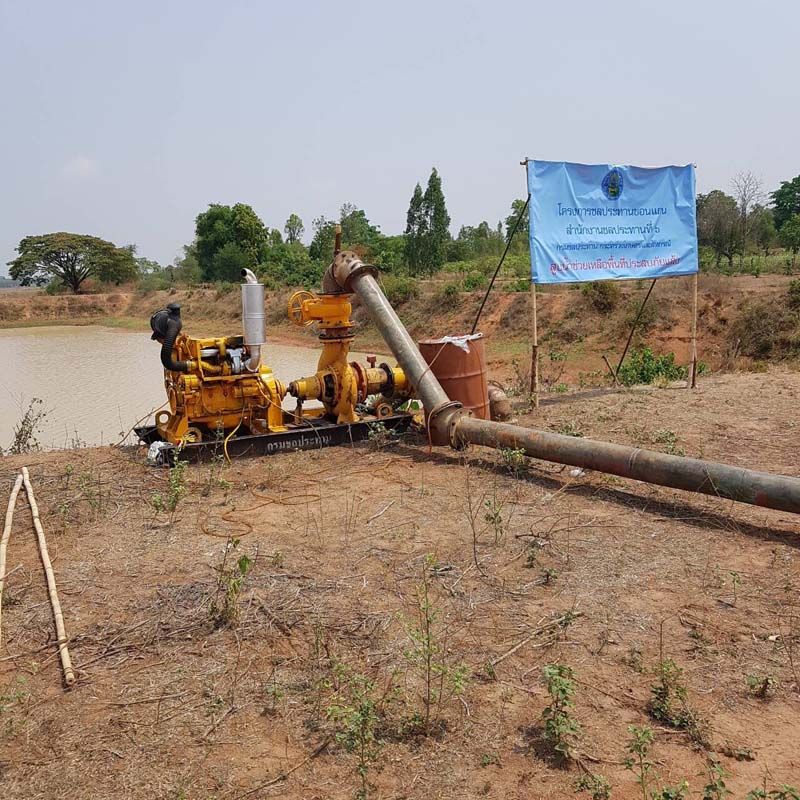 ด้าน นายศักดิ์ศิริ อยู่สุข ผู้อำนวยการสำนักงานชลประทานที่ 6 กรมชลประทาน พร้อมด้วย นายเรืองโชค ชัยคำรงค์กุล ผู้อำนวยการโครงการชลประทานขอนแก่น และเจ้าหน้าที่ผู้เกี่ยวข้อง ลงพื้นที่ติดตามสถานการณ์น้ำอ่างเก็บน้ำห้วยเตย และลงพื้นที่ช่วยชาวบ้านโนนทัน ต.โนนสมบูรณ์ อ.บ้านแฮด จ.ขอนแก่น จำนวน 251 ครัวเรือน ประชากร 1,250 คน ที่กำลังประสบกับปัญหาการขาดแคลนน้ำดิบที่จะนำมาผลิตน้ำประปาหมู่บ้าน โครงการชลประทานขอนแก่น จึงได้ดำเนินการติดตั้งเครื่องสูบน้ำเคลื่อนที่ ขนาด 8 นิ้ว จำนวน 2 เครื่อง เพื่อทำการสูบน้ำจากอ่างเก็บน้ำห้วยเตย ไปเติมให้กับสระเก็บน้ำสำหรับผลิตประปาบ้านโนนทัน ความจุประมาณ 96,000 ลูกบาศก์เมตร ช่วยอบรรเทาความเดือดร้อนของประชาชนและเพื่อให้มีปริมาณน้ำสำรองไว้ใช้ในการผลิตน้ำประปาหมู่บ้านต่อไป