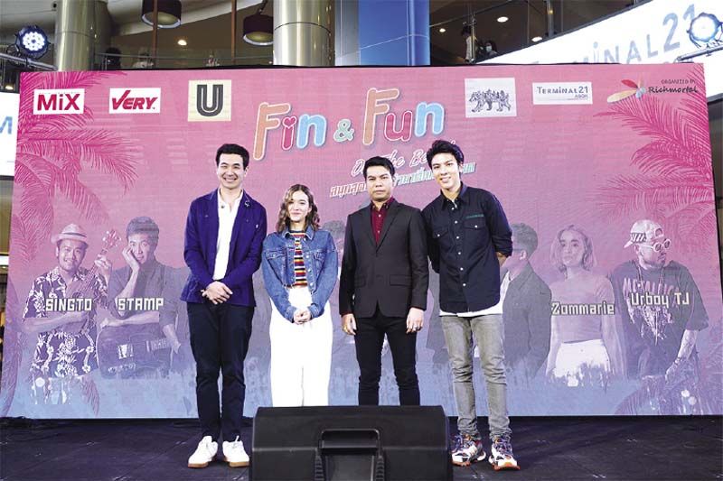 นำทีมศิลปินสุดฟินโดย แสตมป์-อภิวัชร์, ส้ม-มารี, สิงโต นำโชค, วง MILD, Urboy TJ และ DJ EDM สุดมันส์ ที่จะมาทำให้คุณดิ้นและแดนซ์จนหมดแรง ในวันเสาร์ที่ 2 มีนาคม 2562 เวลา 16.00 น. ณ สิกขรา พลาโช่ รีสอร์ท จ.ชลบุรี ล่าสุดได้จัดงานแถลงข่าวคอนเสิร์ต “FIN & FUN ON THE BEACH” สนุกสุดฟินแล้วมาดิ้นกันริมหาดไปเรียบร้อยแล้ว ณ บริเวณลานกิจกรรมชั้น M ศูนย์การค้า เทอร์มินอล 21เตรียมตัวสนุกสุดฟินแล้วมาดิ้นกันริมหาด กับคอนเสิร์ต “FIN & FUN ON THE BEACH” ในวันเสาร์ที่ 2 มีนาคม 2562 เวลา 16.00 น. เป็นต้นไป ณ สิกขราพลาโช่ รีสอร์ท จ.ชลบุรี จำหน่ายบัตรแล้ววันนี้ที่ http://www.ticketmelon.com ติดตามรายละเอียดเพิ่มเติมได้ที่เฟซบุ๊คแฟนเพจ : Fin & Fun
