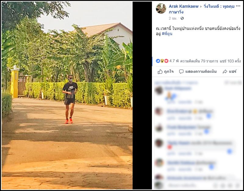เป็นไอดอลของคนไทยค่อนประเทศ สำหรับศิลปินร็อคชื่อดัง ตูน แห่งวงบอดี้สแลม ที่กำลังถูกพูดถึงในขณะนี้ หลังจากที่มีชาวเน็ตรายหนึ่ง ได้ถ่ายภาพของพี่ตูนแล้วนำมาโพสต์ในเฟซบุ๊กกลุ่ม วิ่งไหนดี : พูดคุยภาษาวิ่ง พร้อมระบุข้อความว่า ” ณ.เวลานี้ ในหมู่บ้านแห่งหนึ่ง ชายคนนี้ยังคงซ้อมวิ่งอยู่ #พี่ตูน “ โดยพี่ตูนได้สวมชุดวิ่งตามปรกติพร้อมกับสวมหน้ากากเพื่อป้องกันฝุ่นละออง PM 2.5 ที่สถานการณ์ยังน่าเป็นห่วงในขณะนี้