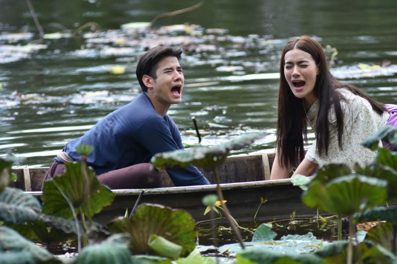 โดยฉากนี้ยกกองถ่ายทำกันที่ศูนย์ส่งเสริมพระพุทธศาสนาแห่งประเทศไทย ในบรรยากาศป่าดงพงไพรล้อมรอบสระบัวกว้างใหญ่ซึ่งน้ำค่อนข้างลึก งานนี้ชุดาภา จันทเขตต์ผู้จัด-ผู้กำกับเลยต้องเซฟสุดๆ จัดการส่งทีมงานลงไปเซอร์เวย์ในสระบัวพร้อมสำรวจความเรียบร้อยเพื่อให้ปลอดภัยทุกฝ่าย ก่อนจะส่ง ทองเอก (มาริโอ้) กับ ชบา(คิมเบอร์ลี่)ลงเรือพายไปกลางสระ ท่ามกลางแดดเปรี้ยงเวลาเที่ยงตรง โดยมีทีมประกบเรือช่วยไม่ห่าง คิมกับโอ้ที่ตอนแรกดูเหมือนจะเก้ๆกังๆ แต่พอเอาเข้าจริงพายเรือคล่องปรื๋อ ทำให้ทั้งคู่บังคับเรือได้ไม่ยาก แถมยังรับส่งอารมณ์หยอกเย้าปนจิกกัด เอ้ย!! เถียงกันเกินเบอร์ แต่พอถึงคิวต้องก้มเก็บบัวกลับไม่ง่ายอย่างที่คิด บวกกับอากาศที่ร้อนระอุ และเพื่อเก็บภาพหลากหลายมุมเพิ่มความสวยงามโรแมนติกนิดๆ ส่วน โอ้-คิม ถึงจะเหงื่อแตกพลั่กๆ แต่หน้ายังยิ้มแป้นหยิบใบบัวมากางเป็นร่มเกร๋ๆชิคๆเพิ่มความน่ารักเข้าไปอีก จนถึงคิวเรือรั่วทั้งคู่เล่นใหญ่ใส่เต็มสุดพลัง แข่งกันร้องลั่นจนน้ำในสระสะเทือน!! โอ้วว อินเนอร์มาเต็มขนาดนี้ไม่รู้ว่ากลัวจริงหรือแอ็คติ้ง แต่บอกเลยว่าฉากนี้ทั้งนอกจอในจอชุลมุนไม่แพ้กัน จนคิมถึงกับร้อง “โอ้ยยยย ชุลมุนกว่านี้มีอีกมั้ย..ยย” ตามลุ้นฉากนี้ได้ คืนนี้ 20.20 น. ทางช่อง 33