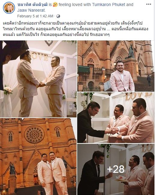 “เคยคิดว่าอีกหน่อยเราก็จะกลายเป็นตาลุงแก่ๆอุ้ยอ้ายสามคนอยู่ด้วยกัน เดินงุ้งงิ้งๆไปไหนมาไหนด้วยกัน คอยดูแลกันไป เลี้ยงหมาเลี้ยงแมวอยู่บ้าน … ตอนนี้เหลือกันแค่สองคนแล้ว แต่ก็ไม่เป็นไร ก็จะคอยดูแลกันอย่างนี้ต่อไป รักเธอมากๆ” ซึ่งก็มีแต่แฟนๆ เข้ามาให้กำลังใจมากมาย
