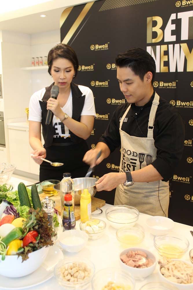 ส่วน เชฟบัส-ธวัชชัย อัครวงศ์วัฒนา Nutrition Advisor แนะนำว่า อาหารเพื่อสุขภาพไม่ใช่อาหารที่ไม่อร่อย แต่จะต้องรู้จักศึกษาเครื่องปรุงต่างๆ ที่ช่วยสร้างรสชาติ เช่น ความหวาน เปลี่ยนจากการใช้น้ำตาลมาเป็นหญ้าหวาน หรือน้ำผึ้งแทน รวมถึงหลายคนเข้าใจผิดว่าการทานสลัดจะช่วยลดความอ้วนได้ แต่หากเลือกใช้น้ำสลัดผิดก็สามารถทำให้อ้วนและส่งผลเสียต่อสุขภาพ เช่น น้ำสลัดที่มีส่วนผสมของมายองเนส จะมีส่วนผสมของไข่แดง น้ำมัน และน้ำตาลไม่ดีต่อสุขภาพ ซึ่งหนุ่มสาวหรือผู้สูงอายุควรหลีกเลี่ยง