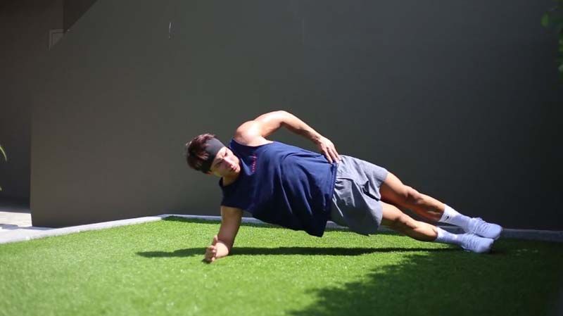 ท่า Side Plank Dips เป็นการบริหารกล้ามเนื้อแกนกลางให้แข็งแรง วิธีการนอนตะแคงด้านใดด้านหนึ่ง วางศอกให้ตรงกับไหล่ให้ขาข้างหนึ่งซ้อนอยู่บนอีกข้าง เกร็งหน้าท้องและยกสะโพกขึ้นจากพื้น ให้ตั้งเป็นมุมสามเหลี่ยมกับพื้นและค่อยลดสะโพกลงเพื่อเริ่มต้นใหม่ ทำข้างละ 15-20 ครั้ง จำนวน 2-3 เซต ซึ่งท่าออกกำลังกายทั้งสองท่านี้ยังช่วยบรรเทาอาการออฟฟิศซินโดรมได้ เพราะช่วยยืดกล้ามเนื้อบริเวณเอว หลังและหน้าท้องปรับสรีระร่างกายให้ตรง