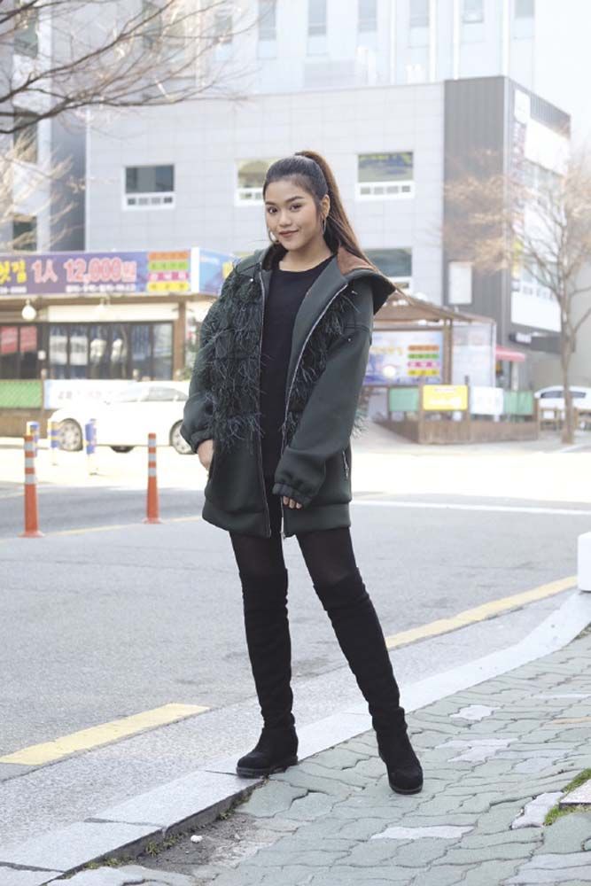 “จริงๆ หนูก็ทำงานร้องเพลงมาเกือบทุกจังหวัดทั่วประเทศแล้วนะคะ แต่ไม่เคยไปร้องที่เมืองนอกเลยสักครั้ง ก็เลยค่อนข้างตื่นเต้นมากๆ ดีใจที่มีโอกาสได้มาทำงานที่เกาหลีเป็นครั้งแรก ประทับใจทั้งบ้านเมืองของเขาสะอาดสะอ้านมาก เป็นระเบียบเรียบร้อย รถก็ไม่ติด ถึงอากาศอาจจะหนาวไปนิดสำหรับเรา โดยเฉพาะตอนกลางคืนหนาวมากๆ อุณหภูมิแค่ 1 องศา แต่ก็ไม่มีฝุ่นนะคะ (หัวเราะ) ซึ่งพอมาถึงวันแรก ที่เมืองหยางซาน ก็ไปเดินช็อปปิ้งกับคุณแม่ในเอ้าท์เล็ทก่อนเลยค่ะ เสร็จแล้วก็ไปเล่นคอนเสิร์ตที่เฮฟเว่นผับ ส่วนอีกวันก็ไปเดินดูของที่ตลาดนัมโพดง ในเมืองปูซาน