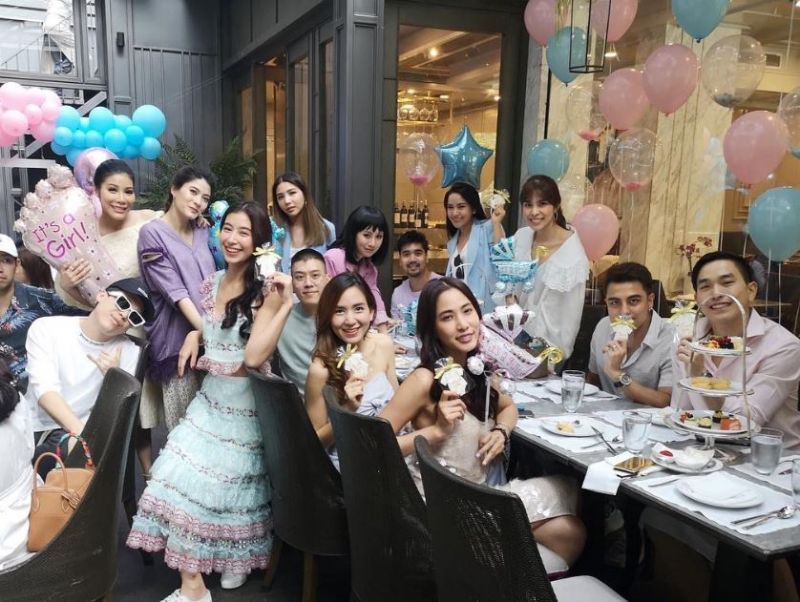 โดยมีเพื่อนๆ พี่น้อง นำทีมโดย มิ้นต์ ชาลิดา ควงคู่มากับ ภูผา เตชะณรงค์ นางเอกสาว คิม คิมเบอร์ลี่, แพง ภิชาภัช ,ไอซ์ พิชพงศ์, พลอย ชิดจันทร์, มารีน่า บาเลนซิเอก้า, มะปราง วิรากานต์, อัทธ์ อังค์กูณฑ์, มาย ลภัสลัล, แหวนแหวน ปวริศา และอีกหลายๆ คนมาร่วมงาน ซึ่งงานนี้ ลุง ป้า น้า อา ก็ไม่พลาดที่จะนำของขวัญมารับขวัญหลานแฝด นอกจากนี้ยังร่วมกันทำเสื้อให้หลาน อย่างตั้งใจอีกด้วย เรียกว่าสนุกสนานกันไปตามๆ กัน ว่าแล้วไปชมบรรยากาศกันเลยดีกว่าค่ะ