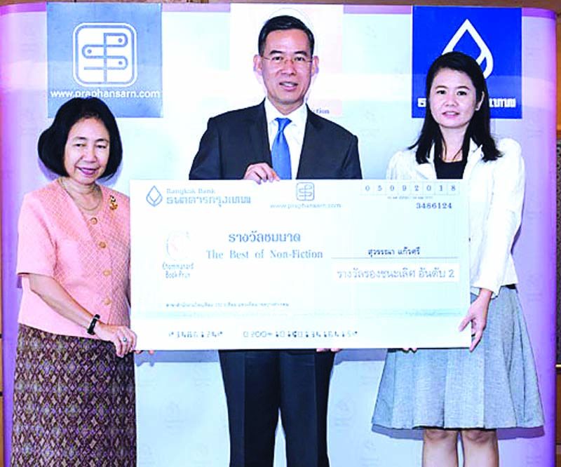 อาทร เตชะธาดา กก.ผจก.บจ.สำนักพิมพ์ประพันธ์สาส์น ร่วมกับ ดร.ทวีลาภ ฤทธาภิรมย์ ผช.ผจญ.ธ.กรุงเทพ จำกัด (มหาชน) มอบรางวัลชมนาดผลการประกวดในครั้งที่ 7 ให้กับ คณาพร สัมฤทธิ์ล้วนรับรางวัลรองชนะเลิศอันดับ 1, สุวรรณา แก้วศรี รับรางวัลรองชนะเลิศอันดับ 2 โดยมีเนาวรัตน์ พงษ์ไพบูลย์ ประธาน กก.ตัดสิน และ ดร.ถนอมวงศ์ ล้ำยอดมรรคผล รองประธานสมาพันธ์องค์กรเพื่อพัฒนาหนังสือและการอ่าน ร่วมแสดงความยินดี