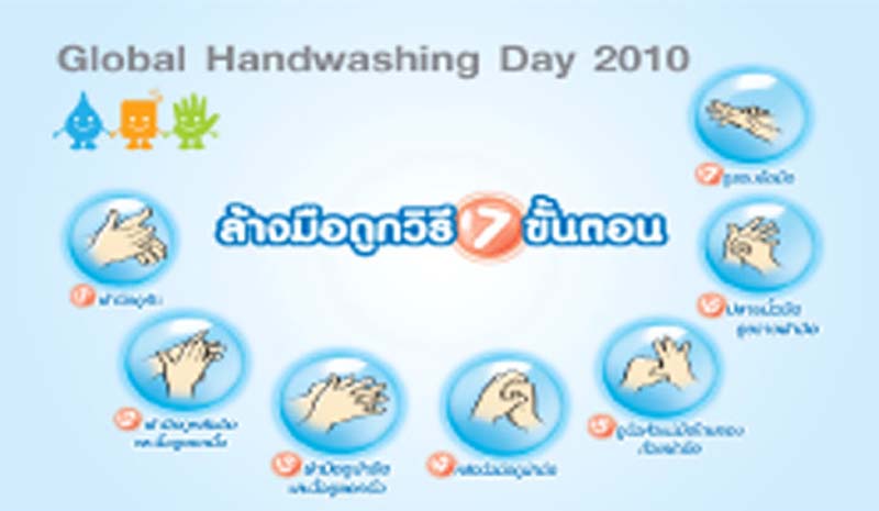 การล้างมือเป็นสิ่งที่สามารถทำได้ง่าย ประหยัดและเสียค่าใช้จ่ายน้อย และสามารถป้องกันการแพร่ระบาดของเชื้อโรคได้ดี ซึ่งการล้างมือที่ถูกอย่างน้อย 20 วินาที วิธีด้วยน้ำและสบู่ มี 7 ขั้นตอน ได้แก่ (1) ฝ่ามือถูกัน (2) ฝ่ามือถูหลังมือและนิ้วถูซอกนิ้ว (3) ฝ่ามือถูฝ่ามือและนิ้วถูซอกนิ้ว (4) หลังนิ้วมือถูฝ่ามือ (5) ถูนิ้วหัวแม่มือโดยรอบด้วยฝ่ามือ (6) ปลายนิ้วมือถูขวางฝ่ามือ และ (7) ถูรอบข้อมือ โดยทุกขั้นตอนทำ 5 ครั้ง สลับกันทั้ง 2 ข้าง