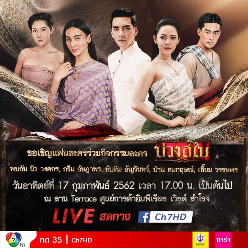‘ช่อง 7HD’ ขอเชิญแฟนๆ ร่วมกระทบไหล่ นิว-วงศกร ปรมัตถากร, กรีน-อัษฎาพร สิริวัฒน์ธนกุล, ทับทิม-อัญรินทร์ ธีราธนันพัฒน์ และ ป่าน-คมกฤษณ์ ดวงสุวรรณ์ ในกิจกรรมละคร ‘บ่วงสไบ’ วันอาทิตย์ที่ 17 กุมภาพันธ์ นี้! ตั้งแต่เวลา 17.00 น. เป็นต้นไป ณ ลาน Terrace หน้าศูนย์การค้า อิมพีเรียล เวิลด์ สำโรงแต่ถ้าแฟนๆ คนไหนไม่สะดวกมา สามารถติดตามชมภาพบรรยากาศ LIVE !! สดจากงาน ได้ทาง Facebook : Ch7HD แล้วมาสะพรึงพร้อมนะคะ