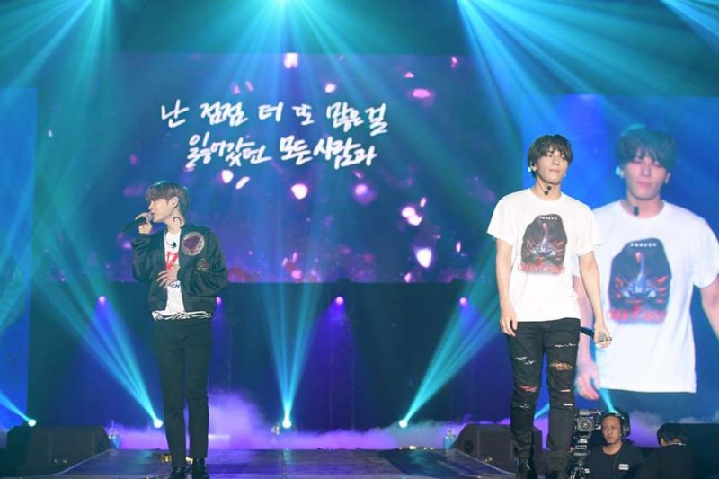 ไม่เพียงเท่านี้ คอนเสิร์ตครั้งนี้ยังได้ศิลปินหนุ่ม คิมดงฮัน มาเป็นแขกรับเชิญ ขึ้นมาพูดคุยหยอกล้อกันอย่างสนุกสนานย้อนวันวานไปถึงสมัย JBJ และยังได้โชว์เพลงของตนให้แฟนๆ ให้ได้ฟังอีกด้วย