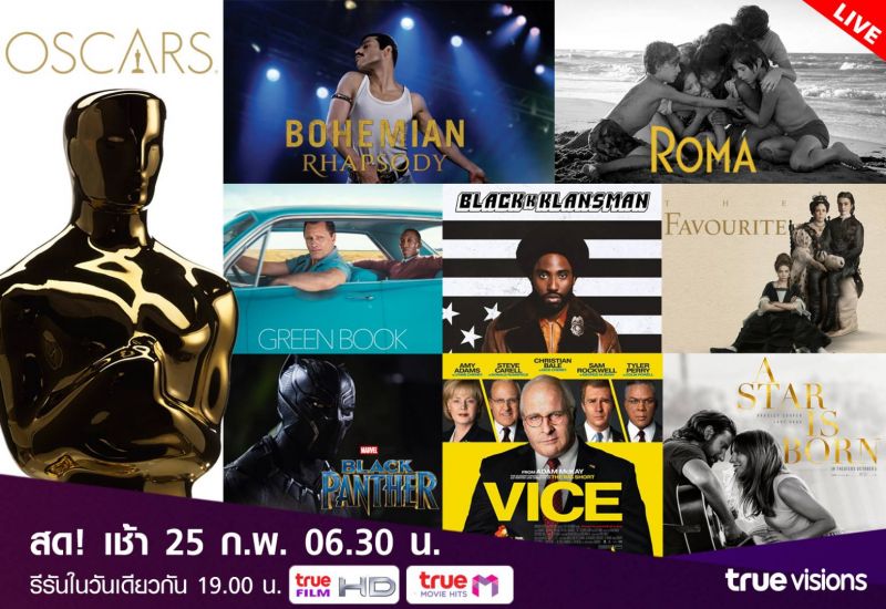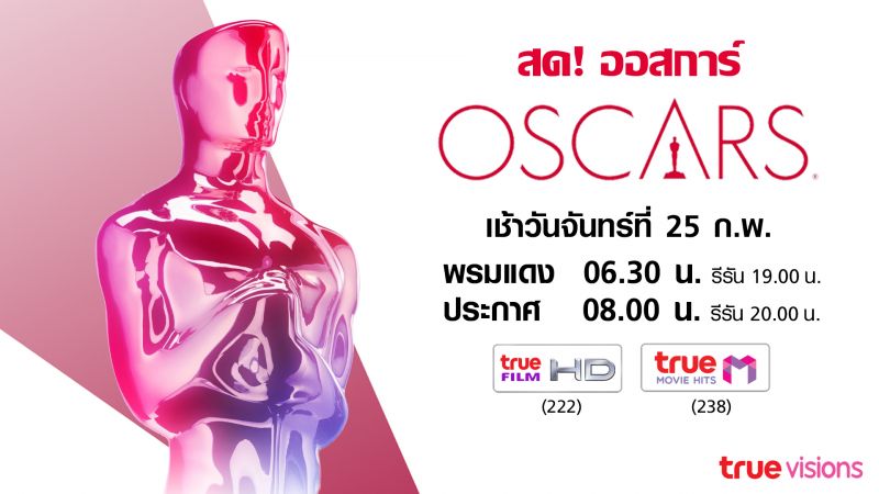 ห้ามพลาดชม ทรูวิชั่นส์ถ่ายทอดสดงานประกาศรางวัล “91st Academy Awards” รับชมได้ที่ ทรูวิชั่นส์ที่เดียว ในเช้าวันจันทร์ที่ 25 ก.พ.นี้ เวลา 06.30 น. ทางช่อง True Film HD (ทรูวิชั่นส์ช่อง 115, 222) และทางช่อง True Movie Hits (ทรูวิชั่นส์ช่อง 238) พร้อมทั้งสามารถรับชมอีกครั้งได้ในเวลา 20.00 น. ทางช่อง True Film HD (ทรูวิชั่นส์ช่อง 115, 222) และเวลา 19.00 น. ทางช่อง True Movie Hits (ทรูวิชั่นส์ช่อง238) พร้อมกันนั้น แฟนๆภาพยนตร์ออสการ์ สามารถรับชมภาพยนตร์ที่เคยได้รับรางวัลได้ทุกวัน ตลอดทั้งเดือนกุมภาพันธ์นี้ ที่ทรูวิชั่นส์