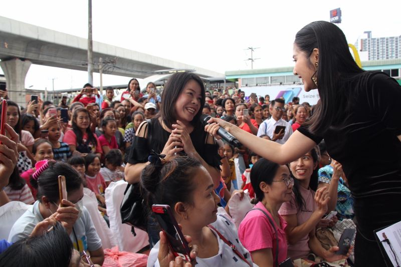 ด้านนักแสดงก็เต็มที่ แฟนๆ เรียกซ้ายก็หันซ้าย เรียกขวาก็หันขวา พูดอ้อนจ๊ะจ๋ากับพ่อแม่พี่น้องย่านสำโรง แบบน่ารักไม่ถือตัว ถูกอกถูกใจแฟนๆ จนพากันหอบขนมของฝากมาให้นักแสดงเพิ่มพลังก่อนกลับบ้านเต็มไม้เต็มมือ เรียกได้ว่ากิจกรรมครั้งนี้ อิ่มท้องอิ่มใจ ทั้งผู้ให้และผู้รับกันเลยทีเดียว