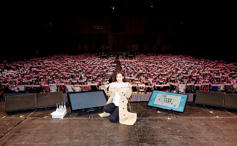 “ยูริ” ( Yuri) หนึ่งในสมาชิกเกิร์ลกรุ๊ปดัง Girls’ Generation เจ้าของฉายา “ไข่มุกดำ” บินลัดฟ้าจัดแฟนมีทติ้งครั้งแรกในประเทศไทย แบบอบอุ่นและอบอวลไปด้วยความสนุกทุกที่นั่ง กับ “YURI 1stFanmeeting Tour “INTO YURI” in Bangkok” โดยผู้จัด “เดอะไลม์ (ไทยแลนด์)”เปิดพื้นที่ให้ไทยโซวอน(ชื่อแฟนคลับ) ได้ใกล้ชิดกับสาวคนนี้ที่ GMM Live House ซึ่งบรรยากาศในฮอลล์สว่างไสวไปด้วยทะเลสีชมพู และเสียงกรี๊ดก็ดังสนั่นเมื่อ “ยูริ” ปรากฏตัวด้วยเพลง Illusion พร้อมท่าเต้นสุดเฟี๊ยช จากนั้นพิธีกรของงาน “เจริญ แซ่จู”ได้ขึ้นมาซาวนด์เสียงความพร้อมก่อนจะชวนทุกคนตะโกน INTO YURI เพื่อเรียก “ยูริ”ออกมาอีกครั้ง เพื่อร่วมกิจกรรม และสร้างโมเม้นต์น่ารักๆ ใกล้ชิดกับแฟนๆ ทั้งโชว์Random Dance, Cover K-Pop, โชว์ภาพลับที่ไม่เคยเปิดเผยที่ไหนมาก่อน ฯลฯ ก่อนจะกดปุ่มหา ลัคกี้แฟน จากทั้งสี่โซนที่นั่งในฮอลล์ ขึ้นไปเล่นเกมกับ “ยูริ” บนเวที โดยทีมไหนชนะ “ยูริ” จะลงไปถ่ายรูปกับโซนนั้นอย่างใกล้ชิด ทำเอาแฟนๆ ได้ร่วมลุ้นกันไปทั้งฮอลล์ กับการแข่งขันของเหล่าตัวแทนซึ่งท้ายที่สุด โซนC คือเดอะวินเนอร์ จากนั้นสาวเสน่ห์แรง “ยูริ” ก็แปลงโฉมอีกครั้ง เพื่อโชว์มินิคอนเสิร์ตย่อมๆ กับเมดเล่ย์เพลงฮิตของ Girls’ Generation