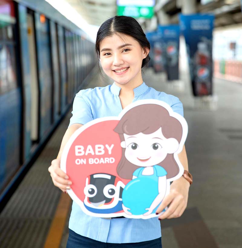 ขั้นตอนการขอรับเข็มกลัด สตรีมีครรภ์ที่สังเกตเห็นได้อย่างชัดเจน สามารถรับเข็มกลัดสัญลักษณ์ได้ทันที ส่วนสตรีมีครรภ์ที่ขนาดท้องยังไม่สามารถสังเกตได้อย่างชัดเจน ขอความกรุณานำเอกสารทางการแพทย์ อาทิ ใบรับรองแพทย์ หรือใบเสร็จจากโรงพยาบาล เพื่อนำมาขอรับเข็มกลัดสัญลักษณ์ เพราะเข็มกลัดทุกชิ้น จะมีหมายเลขระบุด้านหลัง ซึ่งบริษัทฯ จะมีแบบฟอร์มให้กรอกข้อมูลการตั้งครรภ์ อาทิ กรุ๊ปเลือดโรงพยาบาลที่ฝากครรภ์ ชื่อผู้ติดต่อฉุกเฉิน พร้อมเบอร์โทรศัพท์ เมื่อเวลาเกิดเหตุฉุกเฉิน เจ็บป่วย หรือเป็นลม บริษัทหรือเจ้าหน้าที่จะสามารถประสานงานโรงพยาบาลให้ความช่วยเหลือได้อย่างถูกต้องและรวดเร็ว สอบถามรายละเอียดเพิ่มเติม ได้ที่ศูนย์ลูกค้าสัมพันธ์ โทร.02-6176000 หรือ LINE: @btsskytrain