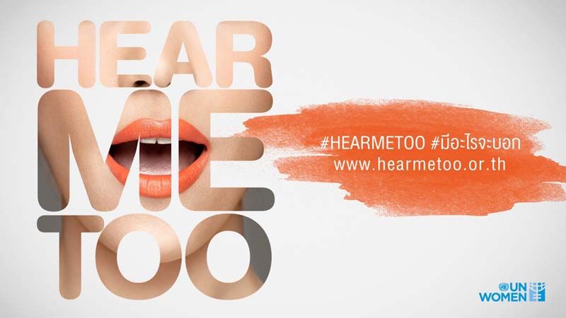 ล่าสุด UN Women ได้จับมือกับ กลุ่มบริษัทชั้นนำด้านสื่อโฆษณาในประเทศไทย อาทิ เจ. วอลเตอร์ ธอมสัน กรุงเทพฯ, มายรัม ประเทศไทย, เวิรฟ พับลิค รีเลชั่นส์ คอนซัลแตนท์ซี, กรุ๊ปเอ็ม ประเทศไทย รวมถึงผู้เชี่ยวชาญด้านการตลาดผ่านอินฟลูเอนเซอร์อย่างอินฟลูออส (Influos) ได้จัดทำ แคมเปญ #HEARMETOOหรือ #มีอะไรจะบอก ในช่วง 16 วันแห่งการรณรงค์เพื่อยุติความรุนแรงด้วยเหตุแห่งเพศ (16 Days of Activism against Gender-Based Violence)โดยเริ่มตั้งแต่วันที่ 25 พฤศจิกายน-10 ธันวาคม2561 ด้วยเป้าหมายหลักคือการปฏิวัติการเปลี่ยนแปลงทางสังคม เพื่อผลักดันให้ผู้หญิงกล้าออกมาพูดเกี่ยวกับการถูกกระทำความรุนแรงมากขึ้น เพื่อรวมเป็นพลังเป็นหนึ่งเดียวในการรณรงค์ต่อต้านความรุนแรง ผลักดันให้เกิดความเสมอภาคและความเท่าเทียมระหว่างเพศในสังคมไทย