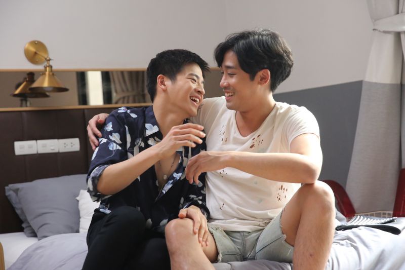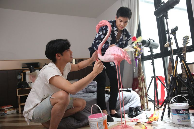 แม้ว่าทั้งคู่จะเคยจูบกันมาก่อนแล้ว แต่มาร์ชกับพิชญ์ก็ยังออกอาการเกร็งๆ อยู่ ผู้กำกับ“กู่ – เอกสิทธิ์ ตระกูลเกษมสุข”จึงให้ทั้งคู่มาซักซ้อมว่าจะจูบแบบมุมไหนเพื่อจะได้มุมภาพที่สวยงาม น่ารักมุ้งมิ้ง ซึ่งก่อนถ่ายจริงมาร์ชกับพิชญ์ก็หลบไปทำสมาธิกันสักพัก พอทุกอย่างพร้อมผู้กำกับก็ถ่ายจริงทันที เริ่มที่พิชญ์อยู่ในลุคน่ารักๆ กับชุดอยู่บ้าน เสื้อยืดสีขาว กางเกงขาสั้น เดินไปเปิดประตูให้มาร์ช แล้วชวนมาร์ชเข้ามาในห้องแต่พอมาร์ชเห็นพิชญ์ยุ่งๆ อยู่กับการตกแต่งพร๊อบนกกระเรียนเลยอาสาช่วย ทั้งคู่ช่วยกันทำงานอย่างอารมณ์ดีแล้วพิชญ์กลับนึกสนุกแกล้งท้ามาร์ชจูบ มาร์ชเลยยื่นปากจะจูบพิชญ์ แต่พิชญ์กลับพยายามเบี่ยงตัวหลบมาร์ชเห็นท่าทางพิชญ์ก็หลุดขำ ยิ้มกับท่าทางเกร็งๆ ของพิชญ์ พอพิชญ์เห็นก็กลัวโดนล้อแถมยังต้องแพ้กับเกมที่ตัวเองท้าลองเลยคว้ามาร์ชเข้ามาจูบทันที พร้อมเข้าไปคลอเคลียออดอ้อนทั้งกอดทั้งหอมแก้มจนมาร์ชเขินหน้าแดง ผู้กำกับเก็บภาพความมุ้งมิ้งของทั้งคู่จนพอใจก็สั่งคัท พิชญ์เผยถึงฉากนี้ว่า “ผมไม่ได้รู้สึกแบบจูบผู้ชายจริง เพราะว่าผมเล่นกับเพื่อน ผมเล่นได้อยู่แล้ว เพราะเราเจอกัทุกวัน อยู่ในกรุ๊ปไลน์ ตัดสูทเราก็ตัดด้วยกันเราก็เลยไม่เขินครับ”