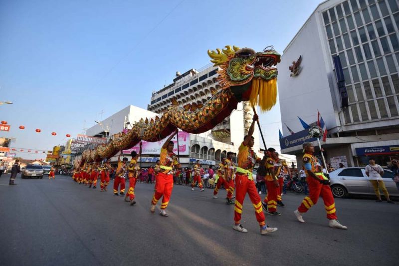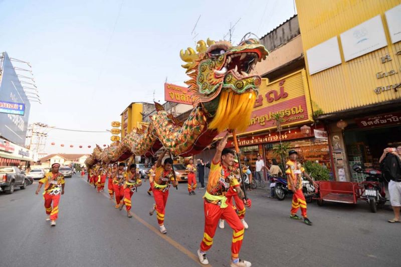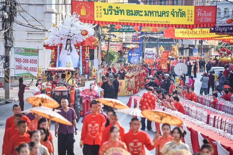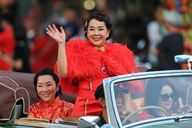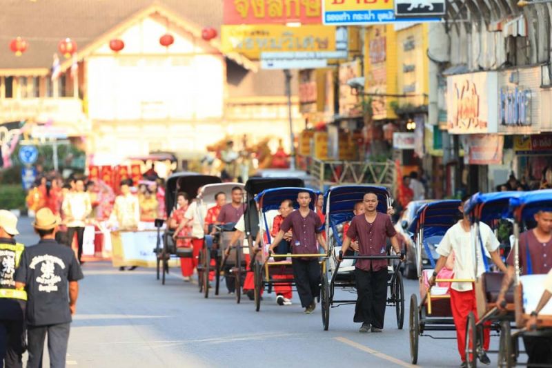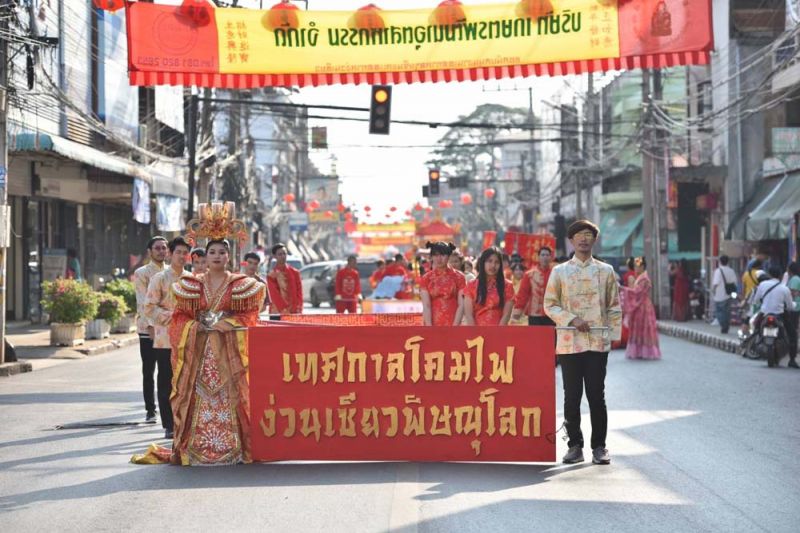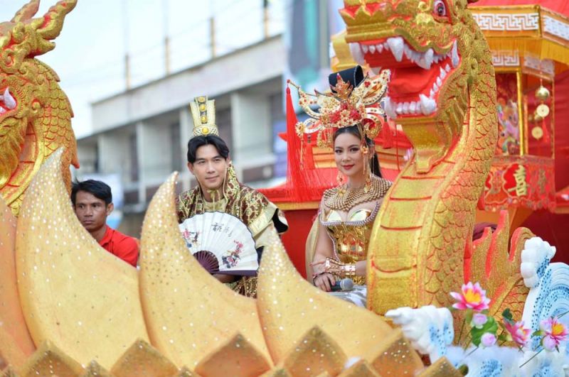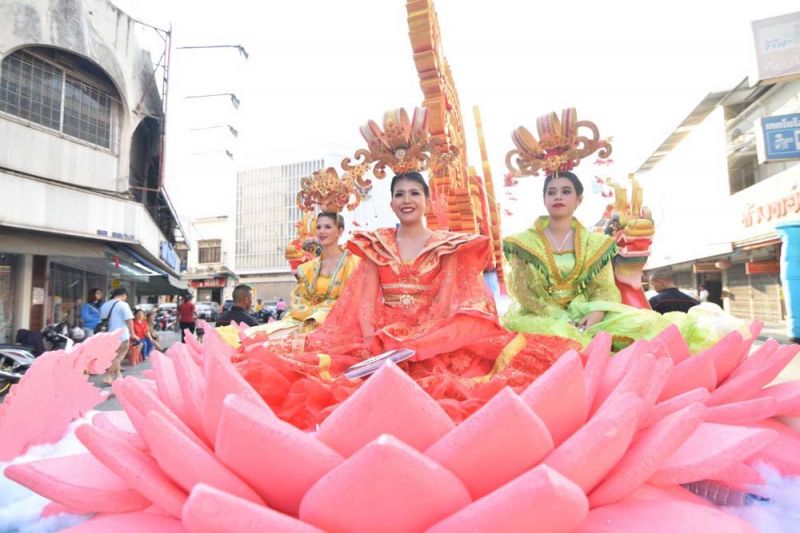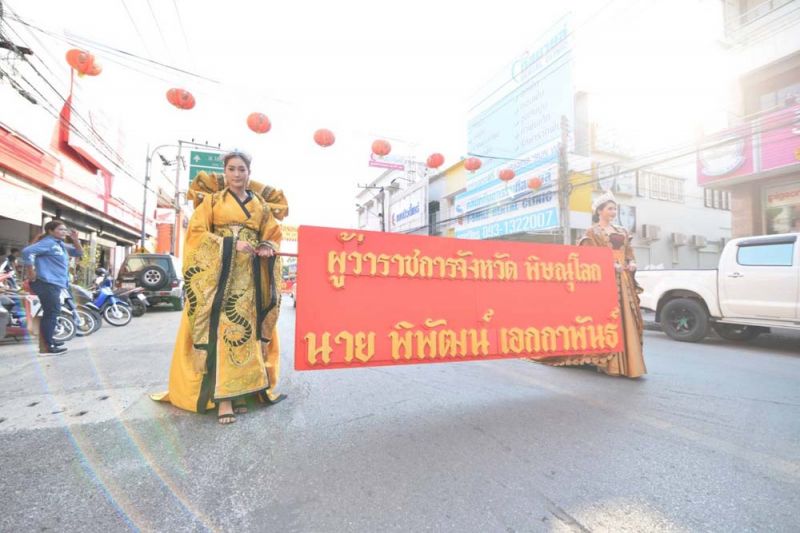 ไฮไลต์สำคัญของวันเปิดงานอยู่ที่ ขบวนแห่ช่วงยามเย็น ซึ่ง”นางมนสินีย์ วัฒนกุลชัย” ประธานจัดงานฯ พร้อมด้วย”นายพิพัฒน์ เอกภาพันธ์”ผู้ว่าราชการจังหวัดพิษณุโลก ร่วมเปิดขบวนโดยนั่งมาในรถคลาสสิคเปิดประทุน และภายในขบวนแห่ยังมีขบวนรถสามล้อสัญลักษณ์เมืองสองแควตกแต่งสวยงาม ขบวนมังกร -สิงโต ขบวนรถตกแต่งด้วยแสงสี และโคมไฟตลอดขบวน โดยมี 2 พิธีกร”เป๊ก เปรมณัช -บุ๋ม ปนัดดา” พร้อมเหล่าสาวงามจากเวที มิสไทยแลนด์เวิลด์,มิสแกรนด์ไทยแลนด์,มิสอินเตอร์เนชั่นแนลไทยแลนด์ ร่วมโชว์ความงดงามตระการตาในขบวนแห่ครั้งนี้ด้วย