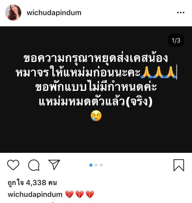 “ขอความกรุณาหยุดส่งเคสน้องหมาจรให้แหม่มก่อนนะคะ ขอพักแบบไม่มีกำหนดค่ะ แหม่มหมดตัวแล้ว (จริง ๆ)”